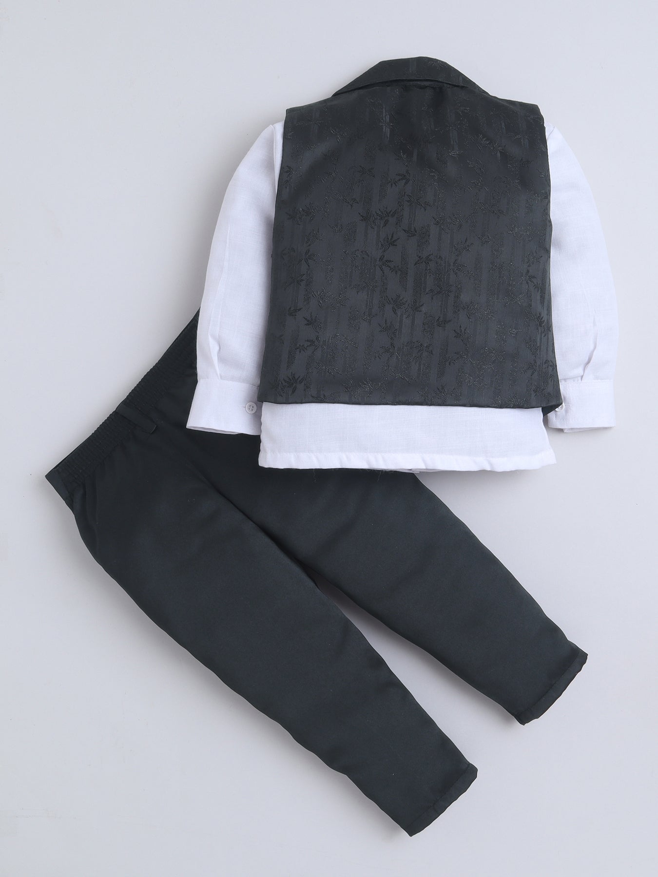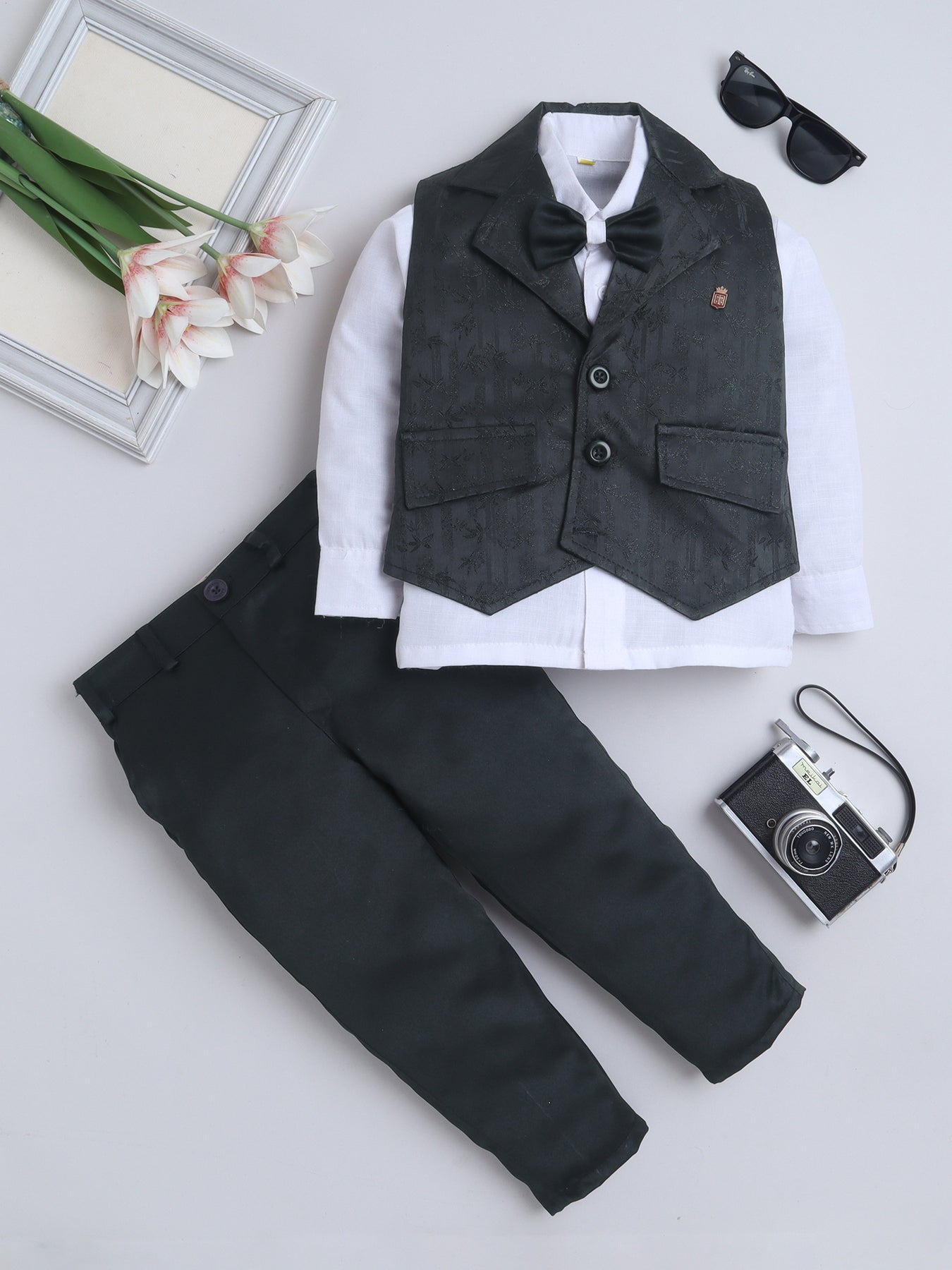 Boys Leaf Motifs 3 Piece Suit Set With Bow