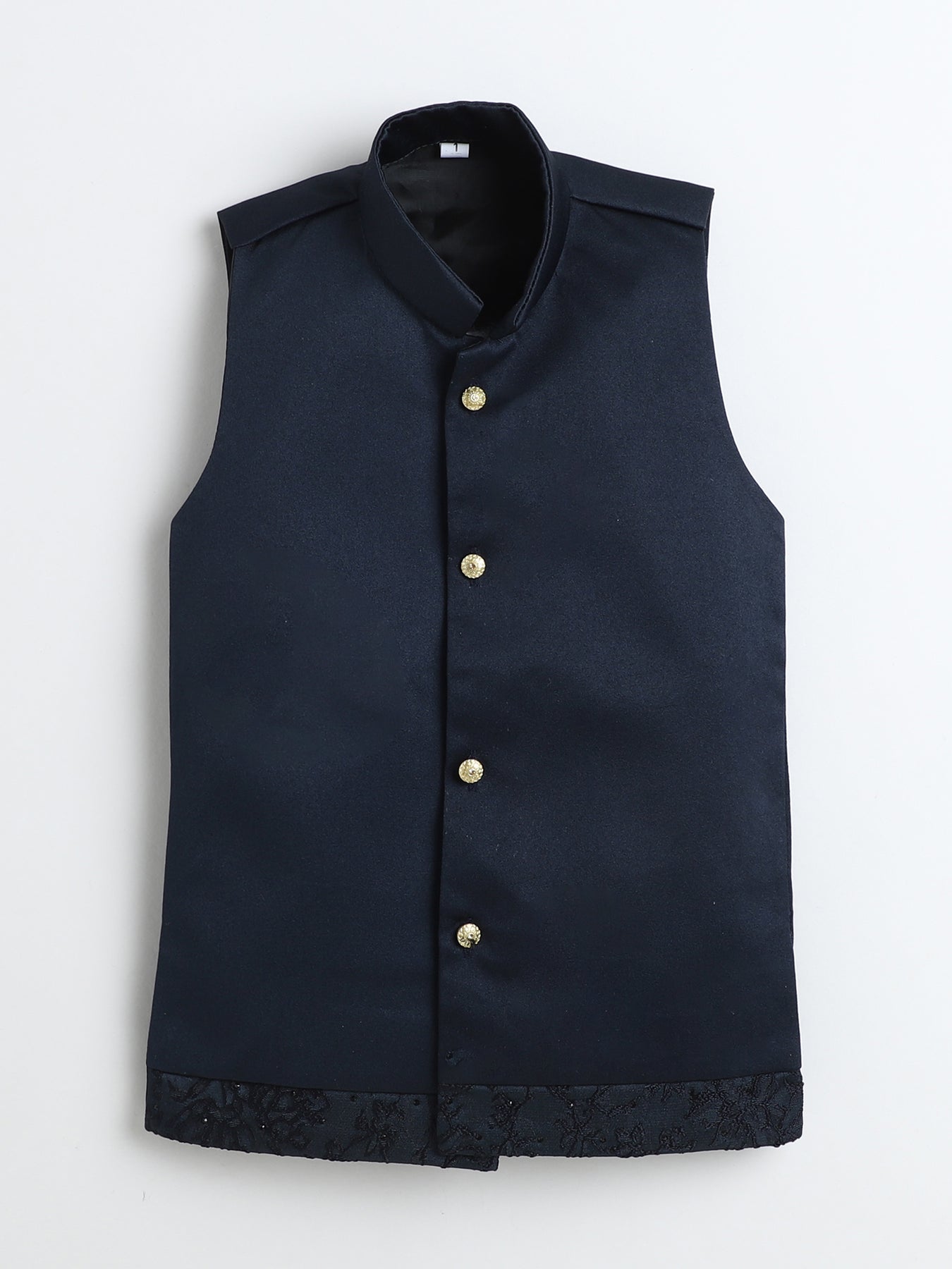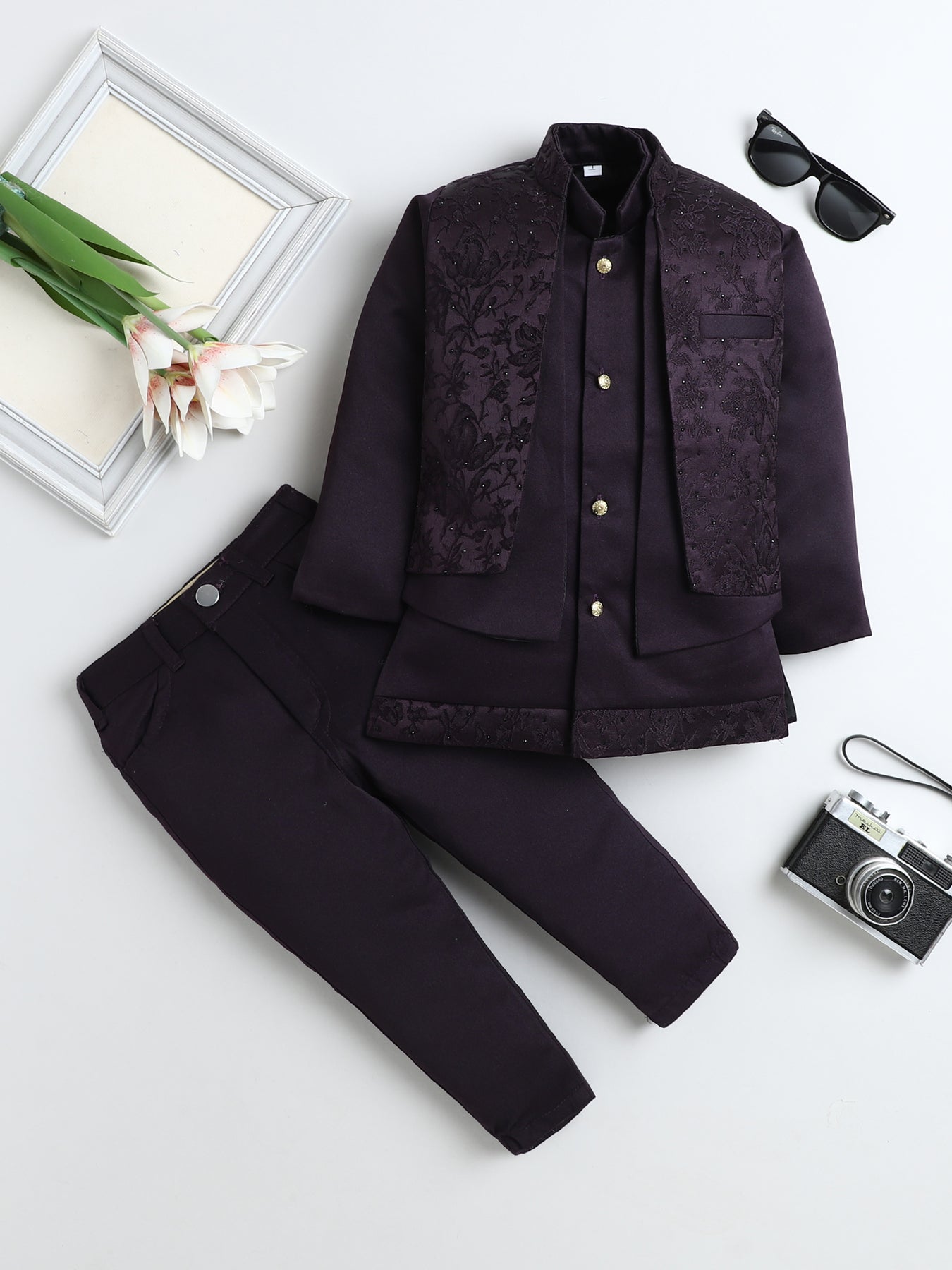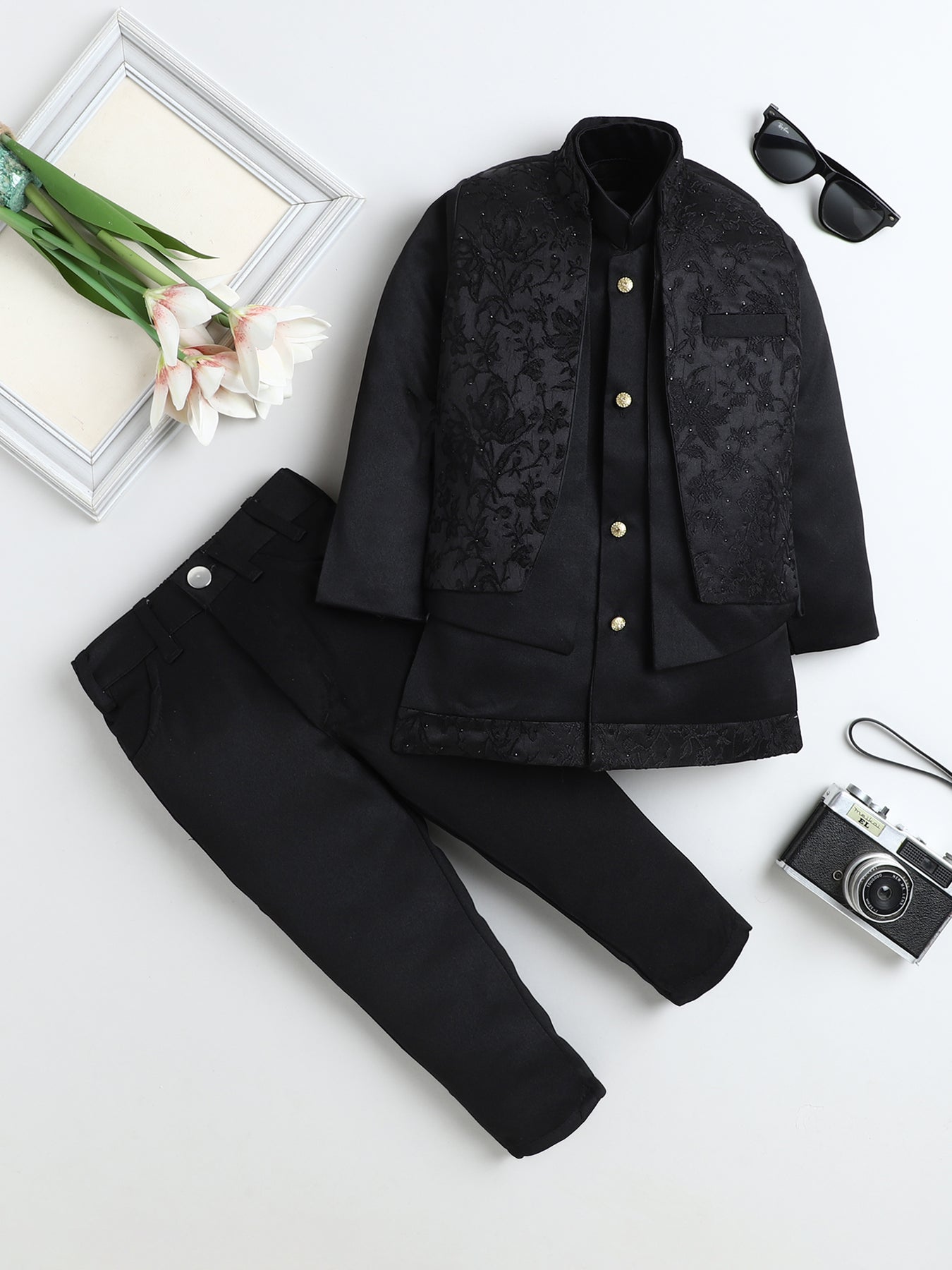 Ideal for weddings, festivals, and special celebrations, this coordinated set delivers a polished and sophisticated ethnic look for boys.