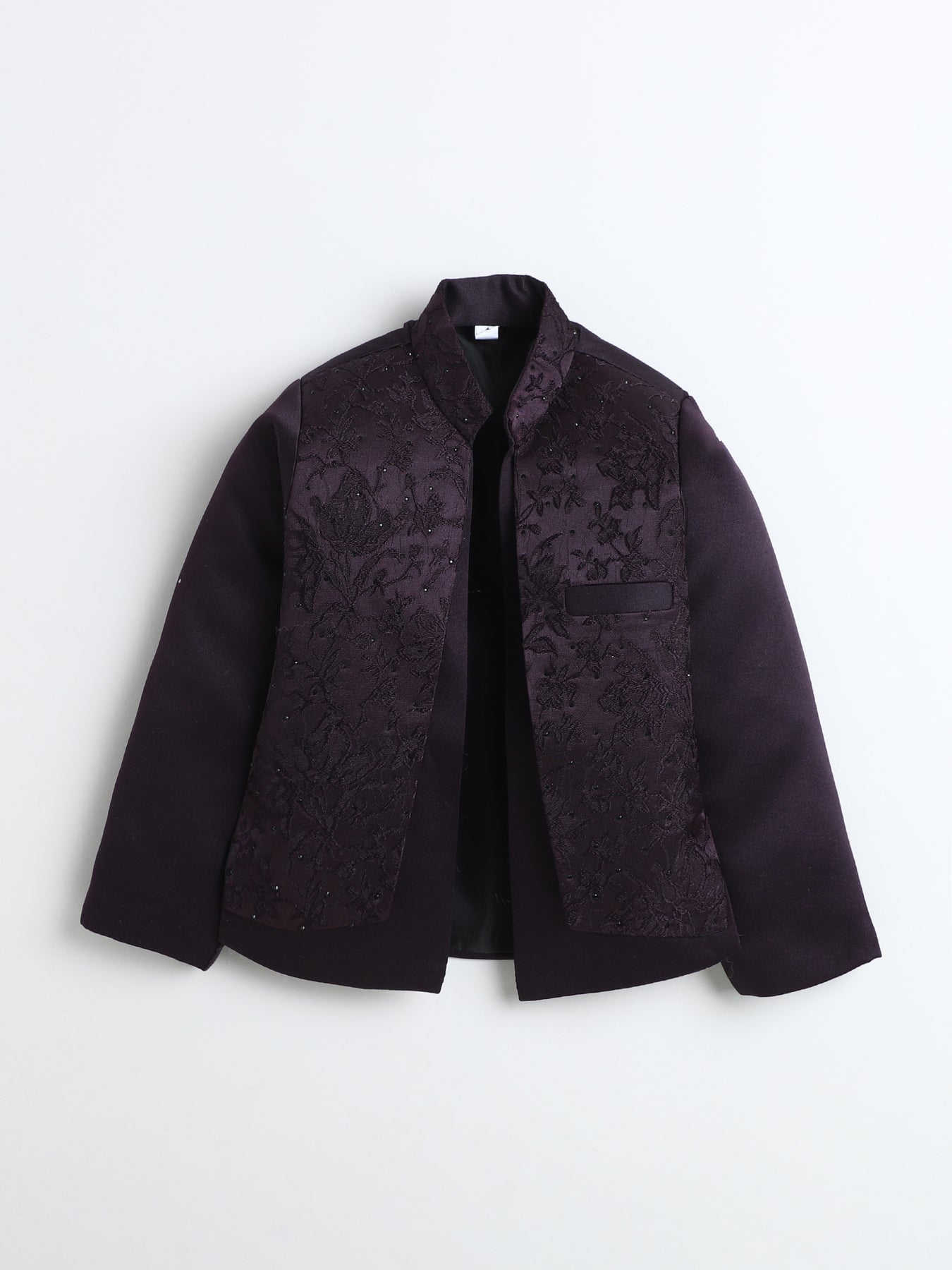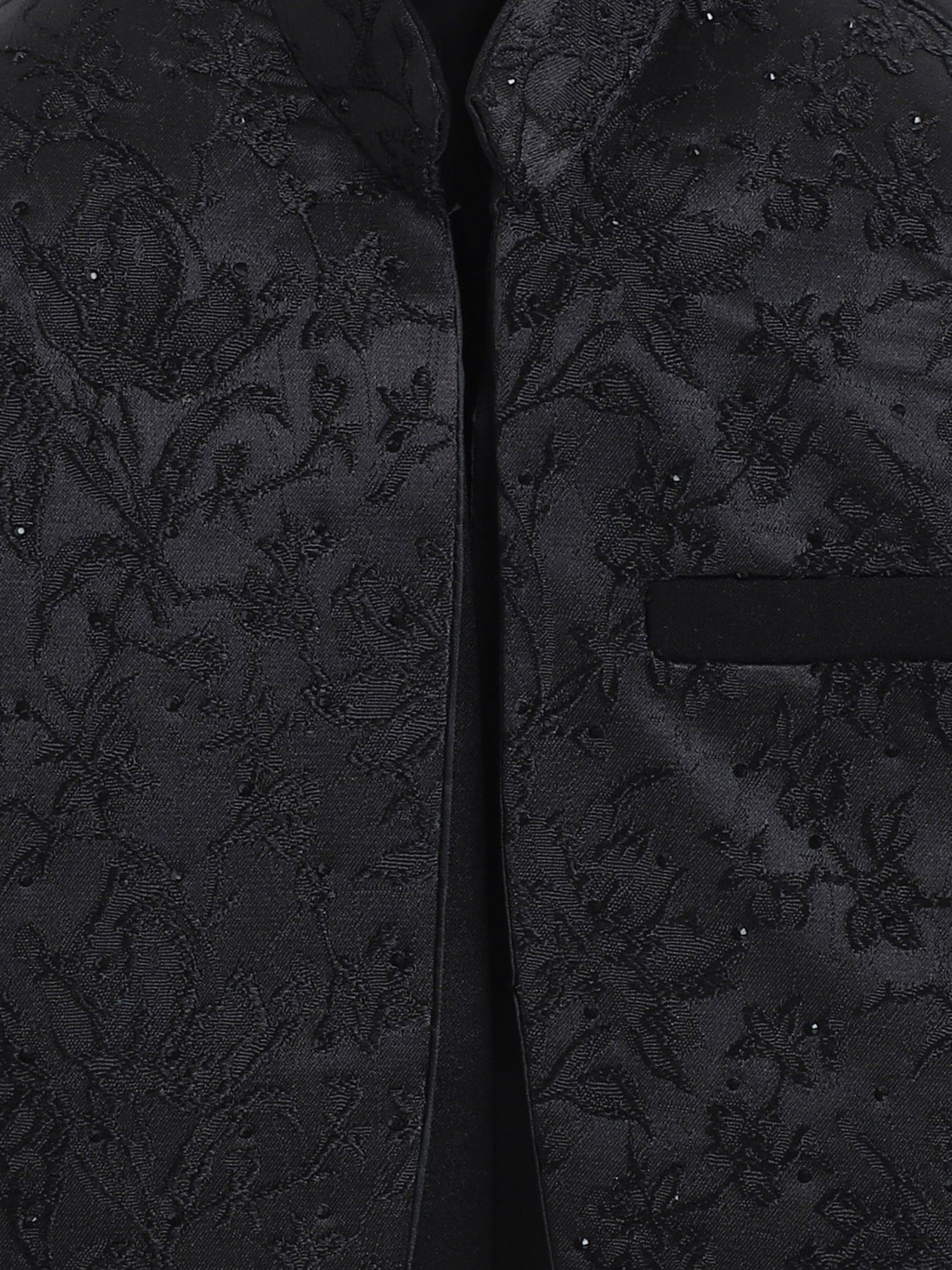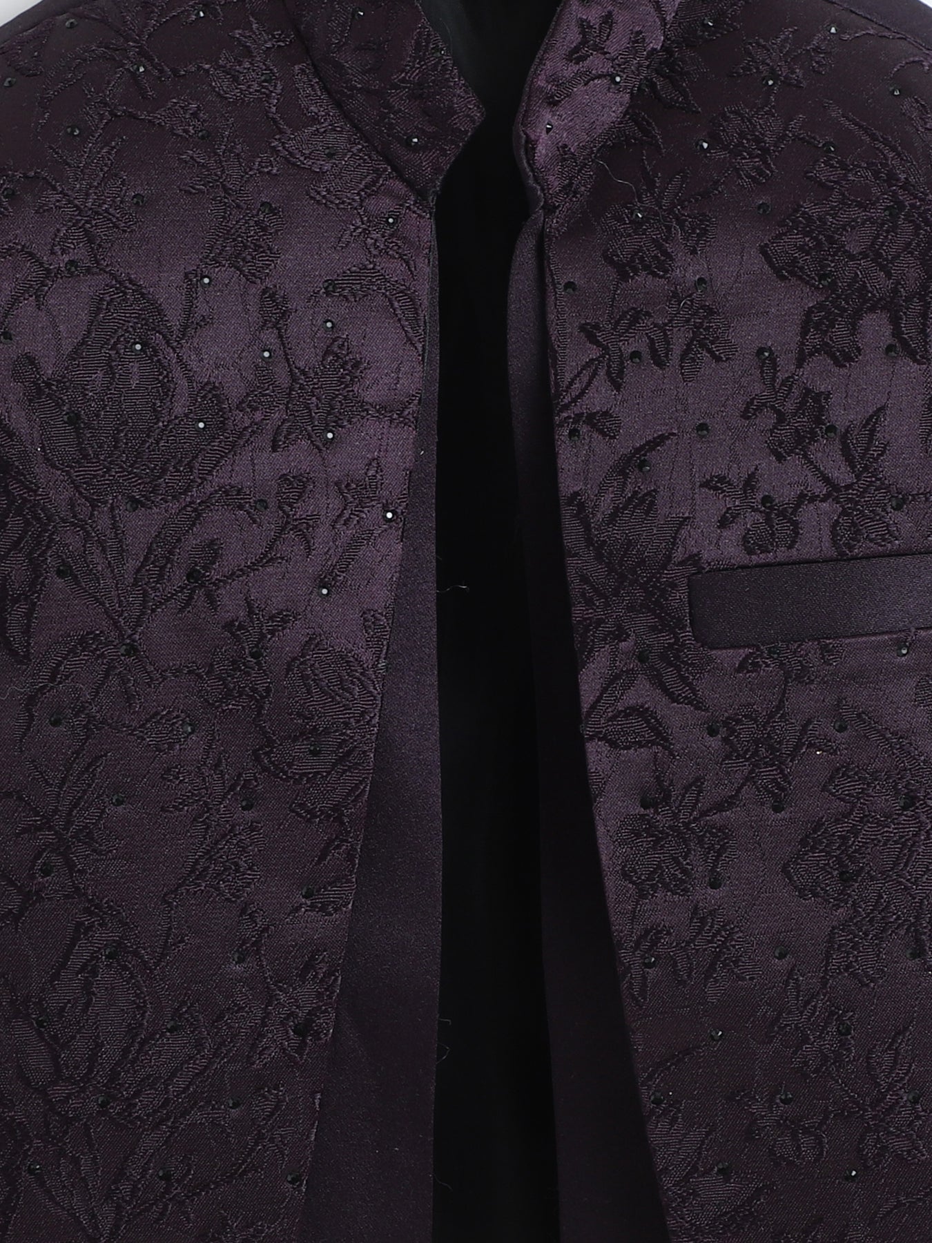 Make a grand statement at weddings and festive celebrations with this sherwani set exudes timeless charm, featuring a sleeveless sherwani layered with a beautifully crafted shrug adorned with intricate floral motifs and shimmering bead embellishments for a premium festive touch. The shrug enhances the ensemble with its rich ornamental design, creating a stylish contrast while elevating the overall look. The sleeveless sherwani offers a sleek silhouette that sits comfortably, making it easy to carry during long celebrations. Paired with a neatly tailored trouser that ensures ease of movement, this set strikes the perfect balance between traditional craftsmanship and modern styling. Ideal for weddings, engagements, cultural festivities and family events, this refined sherwani set promises a regal appearance with exceptional comfort and classy sophistication.