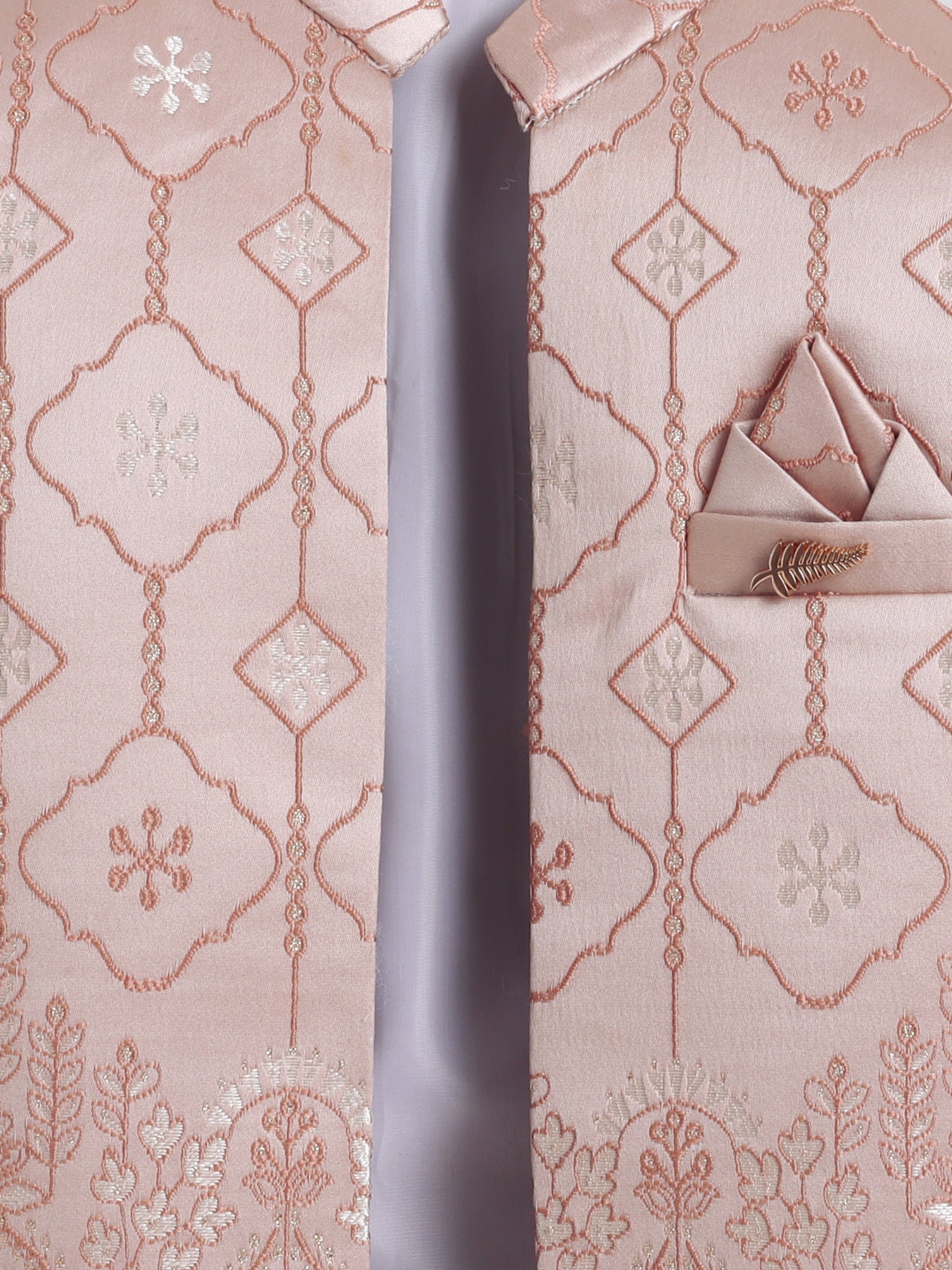 Premium Shrug: Showcases intricate leaf motifs by rich jacquard, giving a royal and stylish finish that stands out at any occasion.