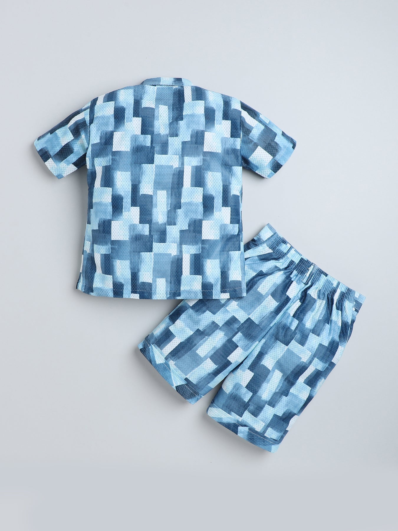 Bring a burst of color and creativity to your little one’s wardrobe with this co ord set. Thoughtfully designed for both comfort and style, this coordinated outfit features a soft, breathable cotton-blend fabric that keeps your child cool and comfy all day long. The half-sleeve shirt is adorned with a vibrant and modern abstract print, giving it a trendy edge that stands out from ordinary basics. A classic collar, front button closure, and a tailored fit elevate the look while maintaining easy functionality. The matching shorts, also decked in an abstract print, come with an elasticated waistband that provides a snug yet flexible fit. Whether it's playtime, picnics, family outings, or casual gatherings, this versatile set keeps your boy looking effortlessly fashionable while ensuring maximum comfort. This matching printed set is not only easy to style but also makes dressing up quick and fuss-free—perfect for busy mornings and spontaneous plans.