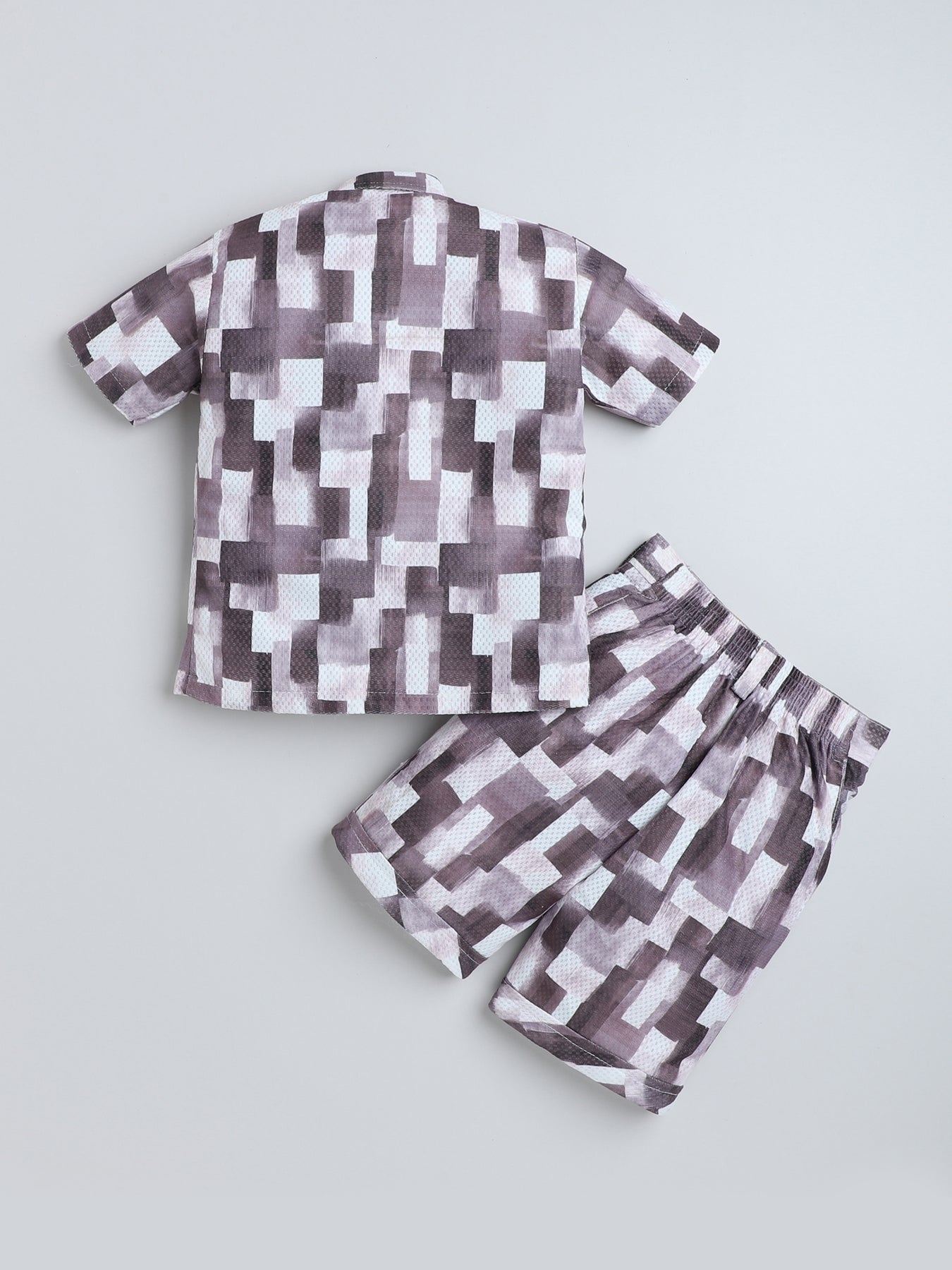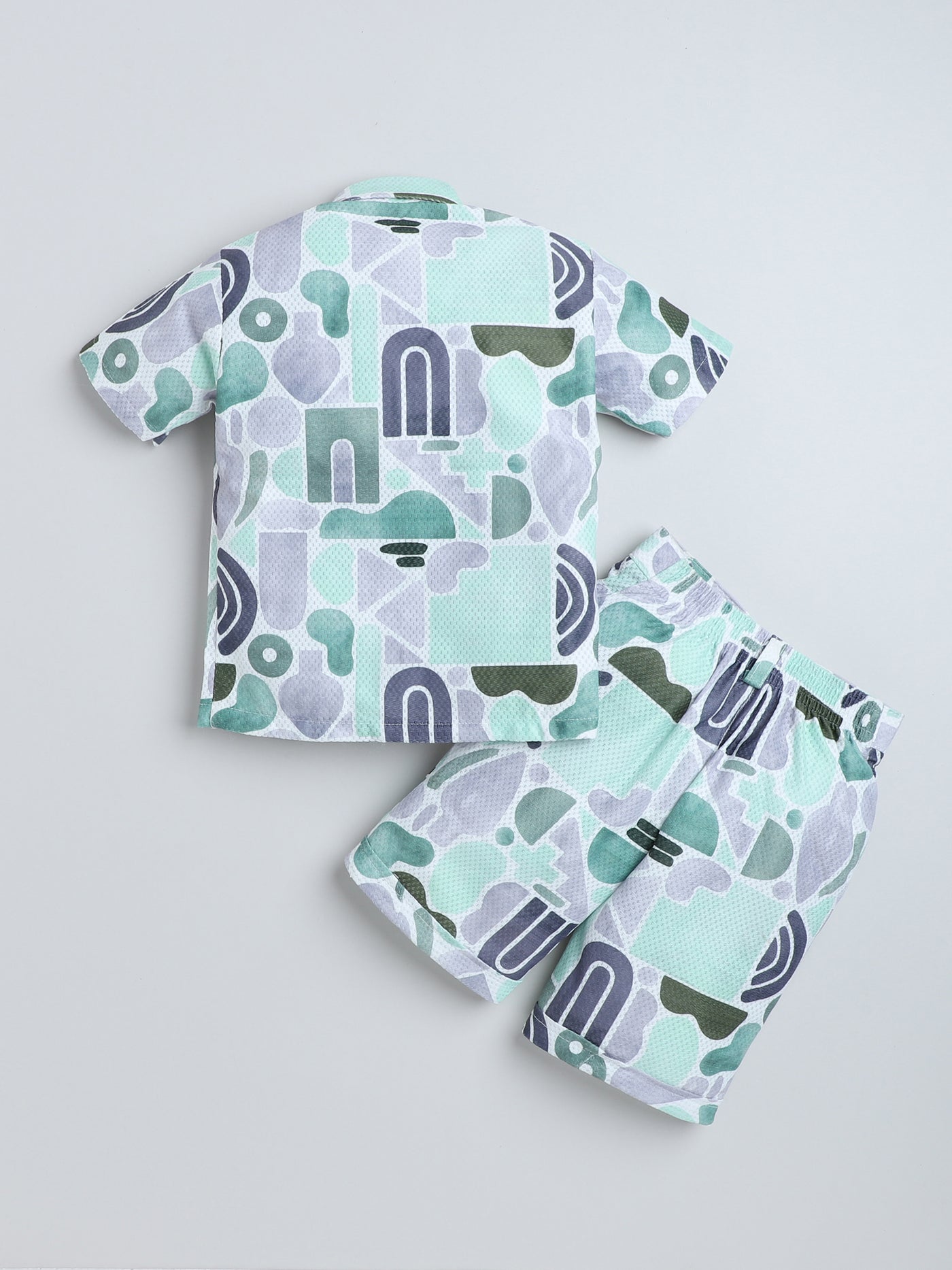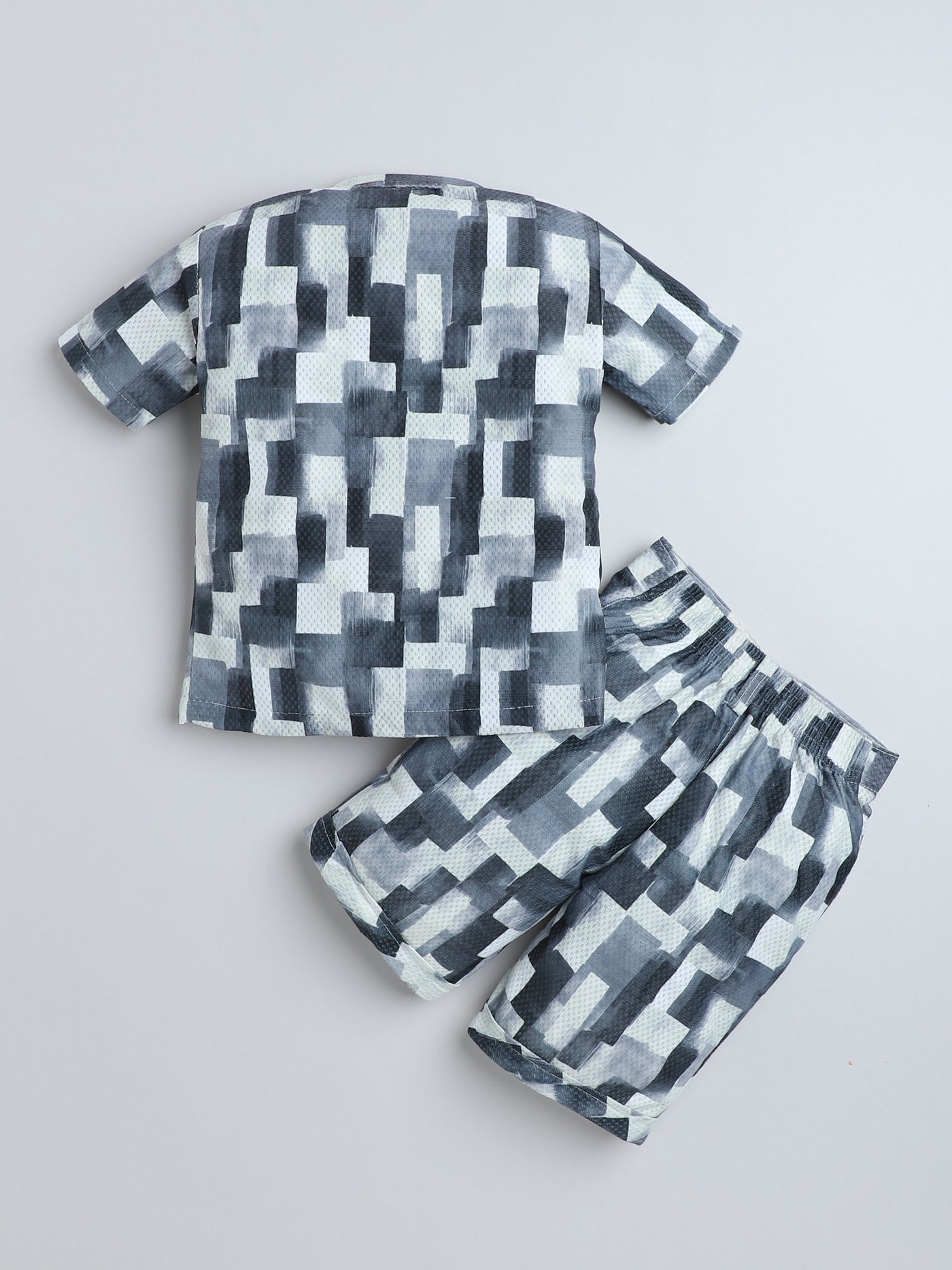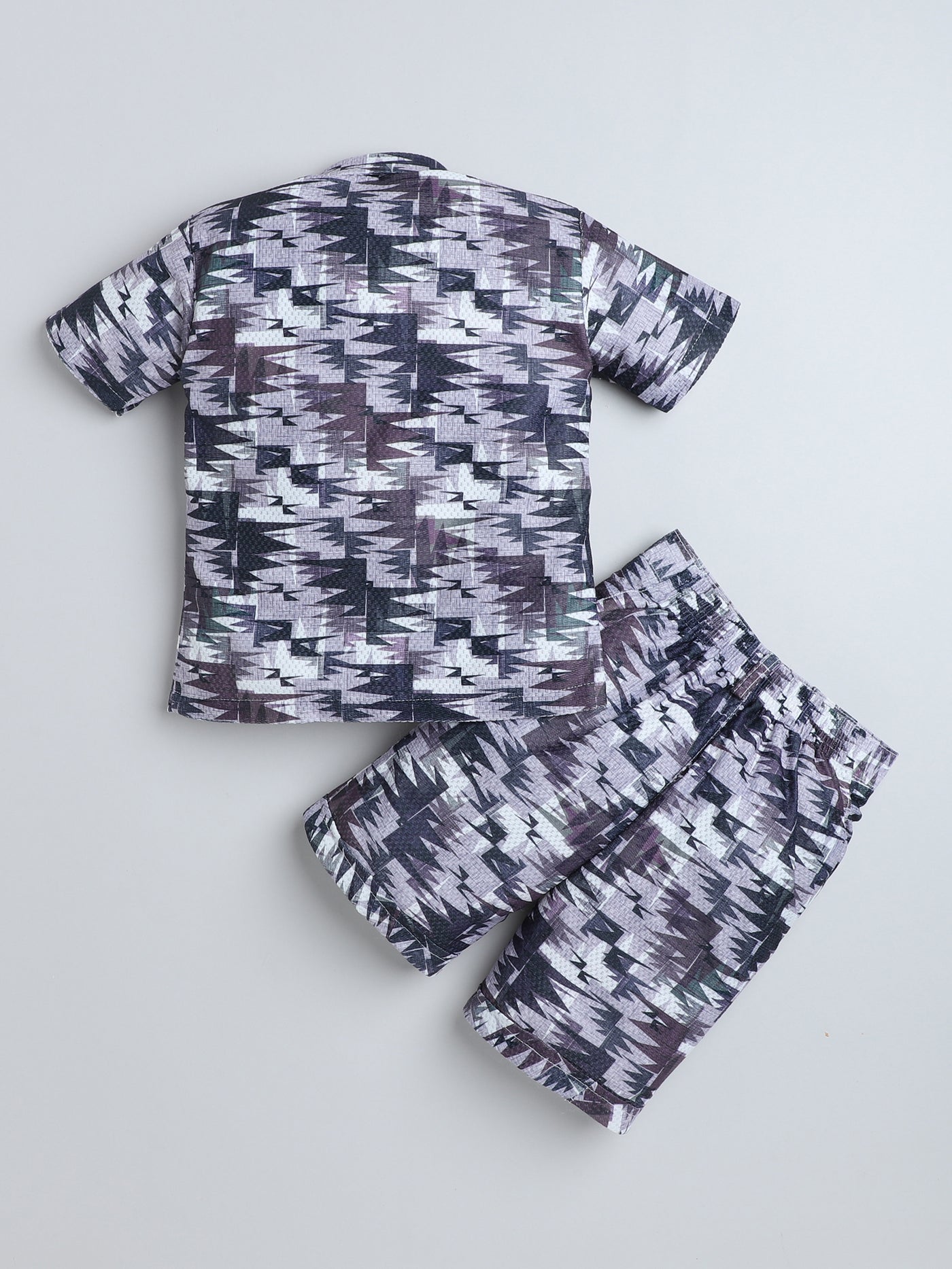 Trendy Abstract Prints: Eye-catching prints on both shirt and shorts for a coordinated, modern look