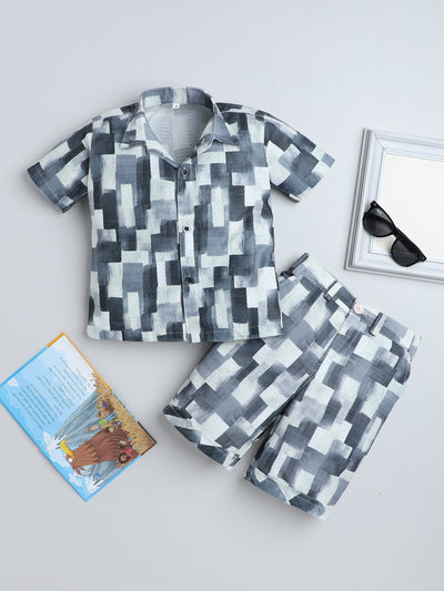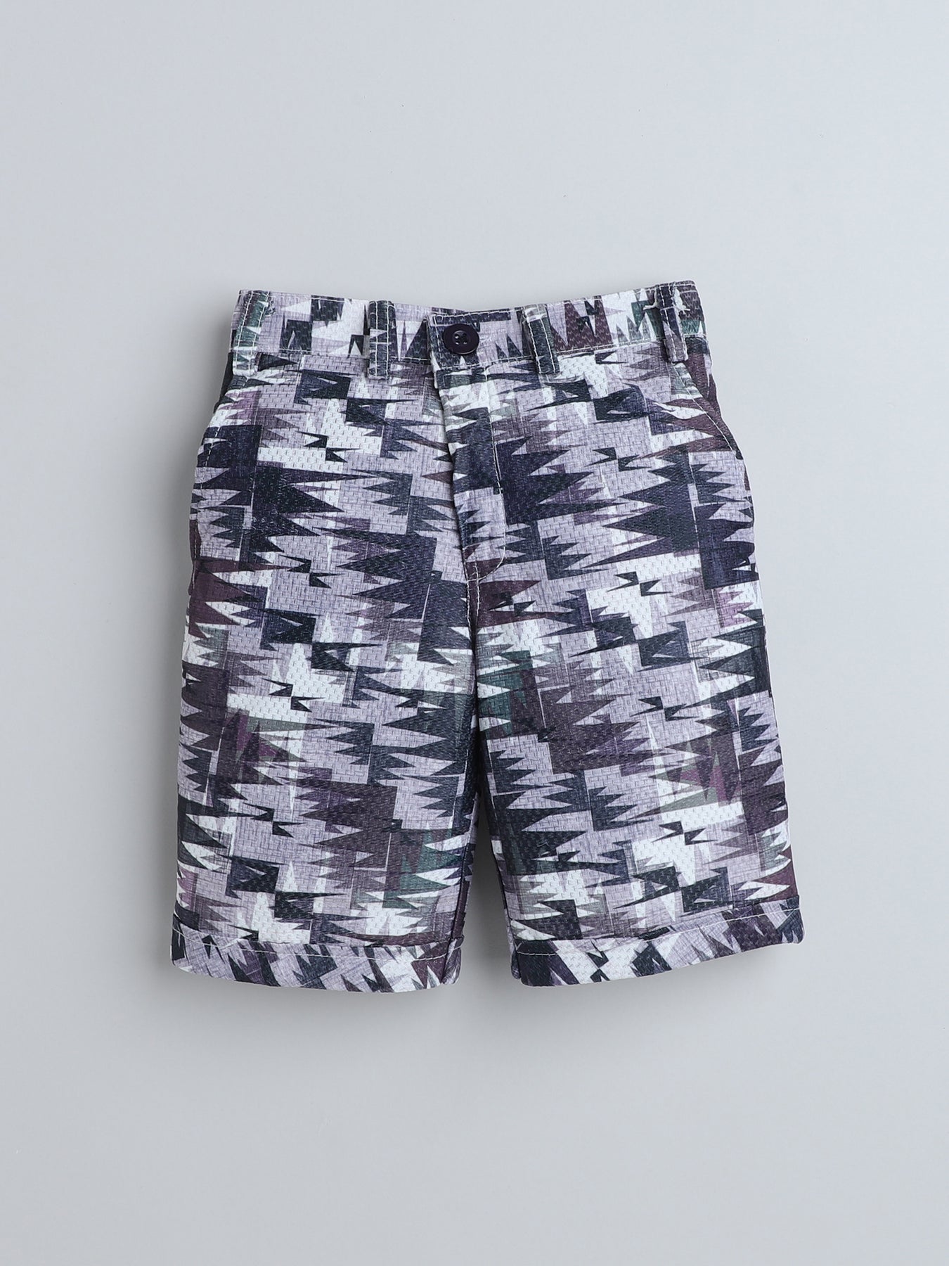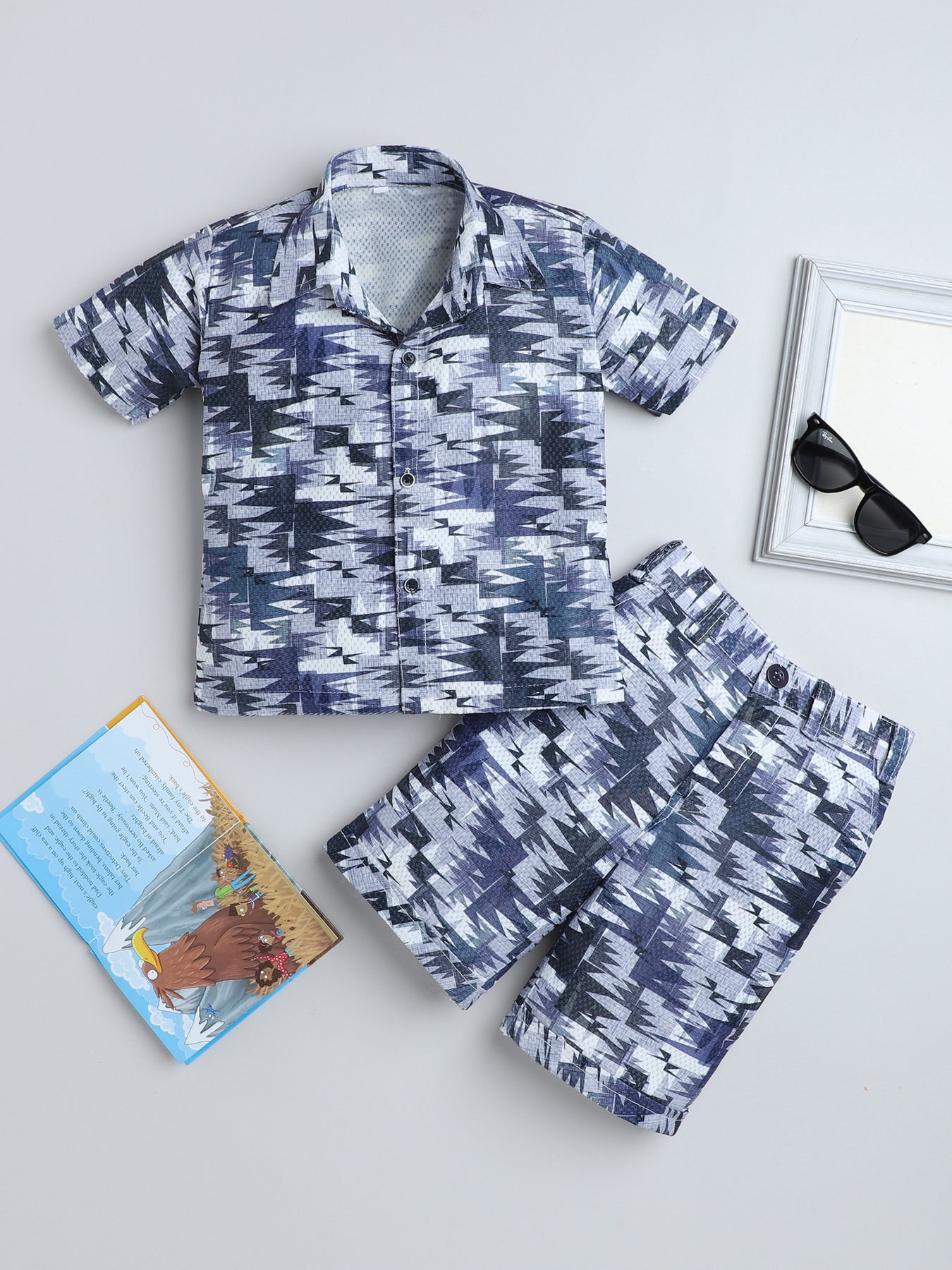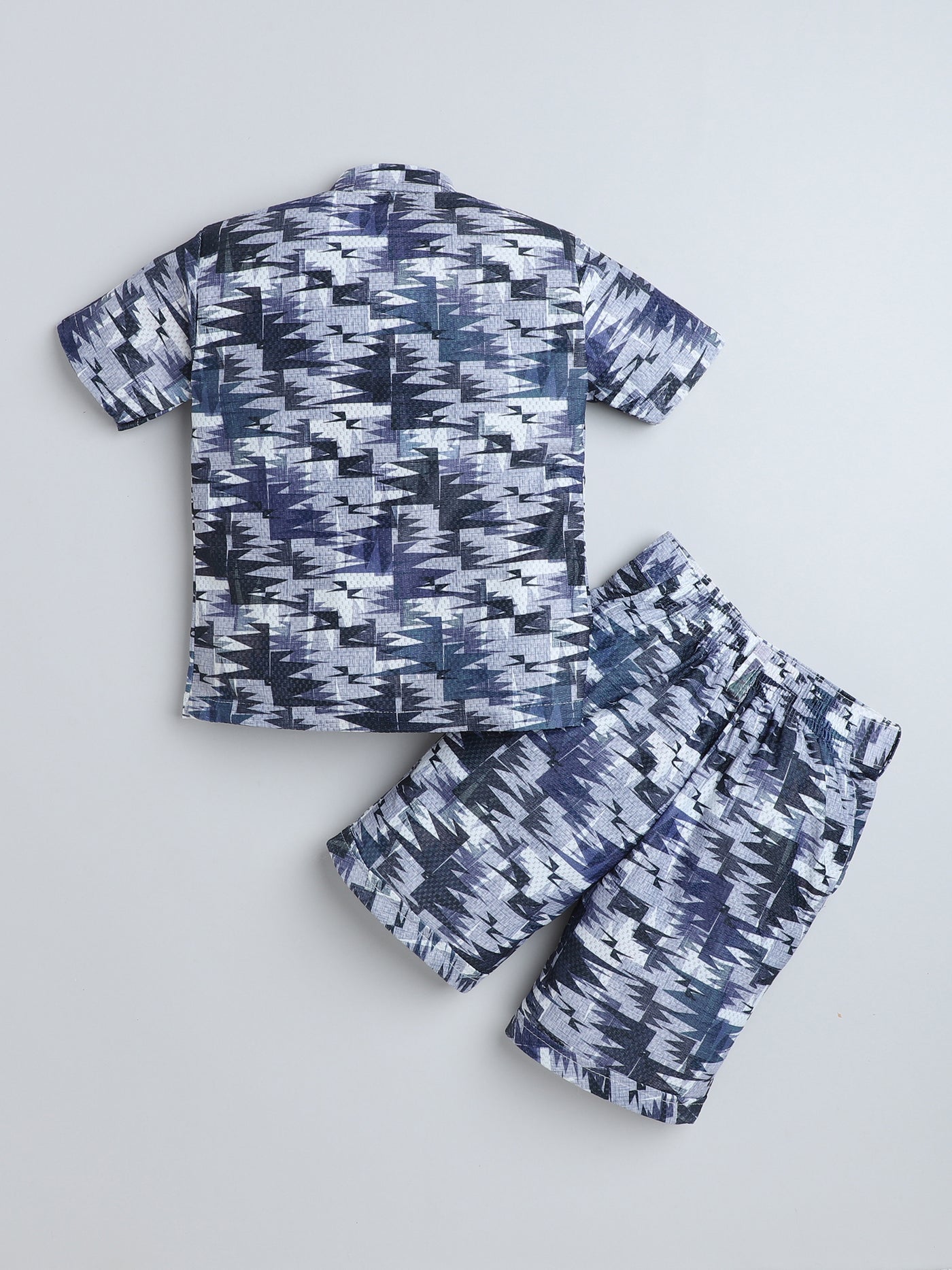 Trendy Abstract Prints: Eye-catching prints on both shirt and shorts for a coordinated, modern look