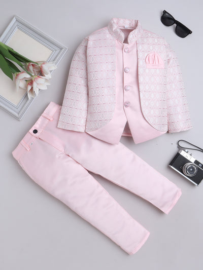 Boys Geometric Sequined Jodhpuri 2 Piece Suit Set
