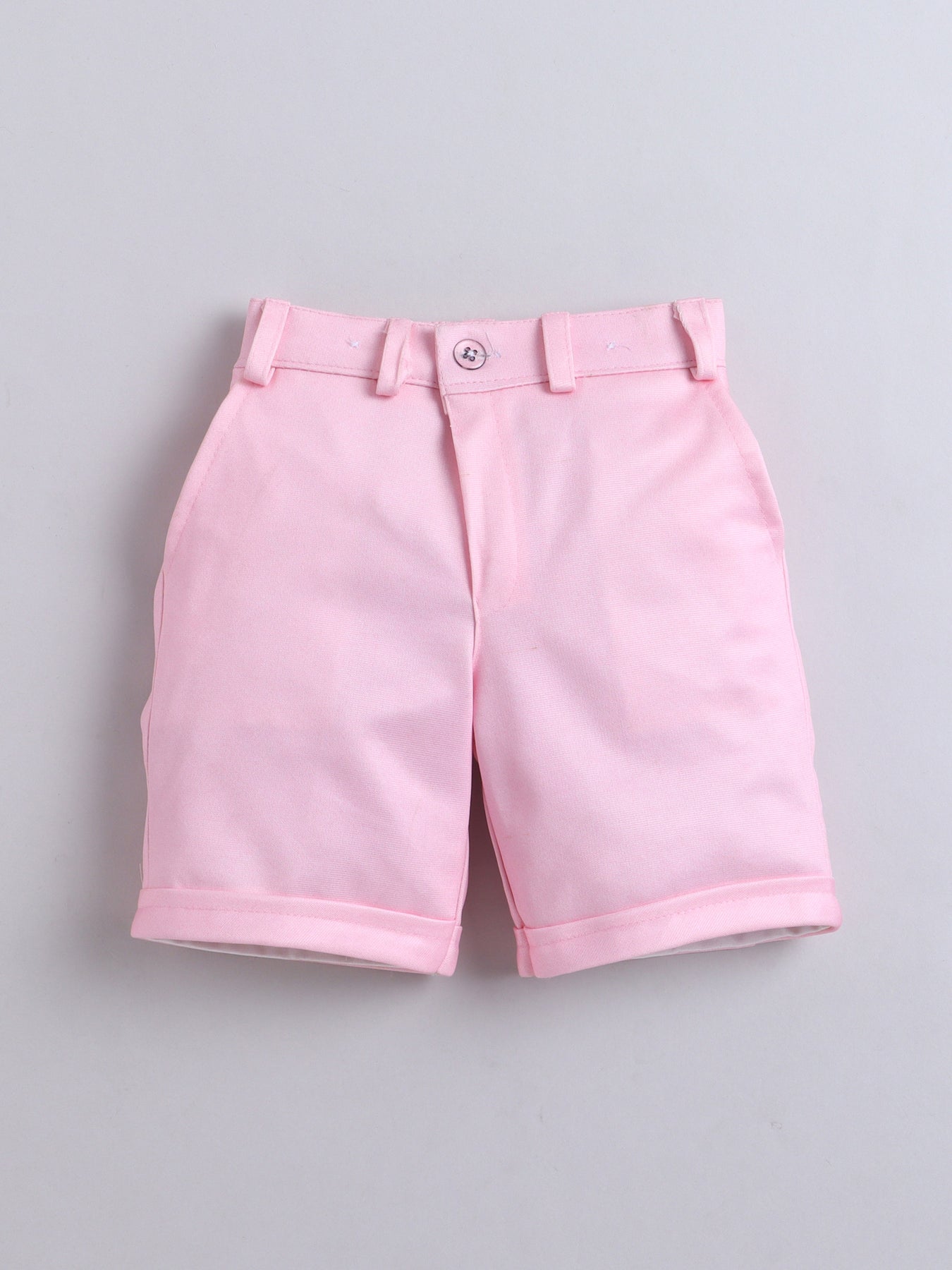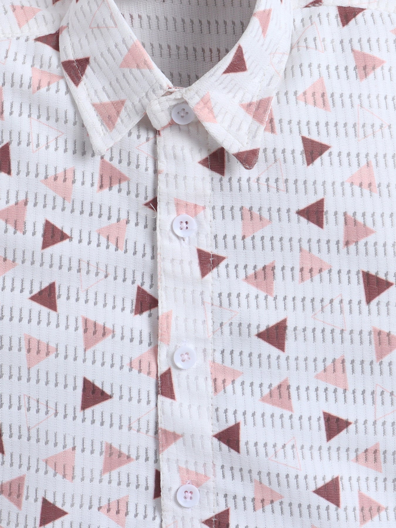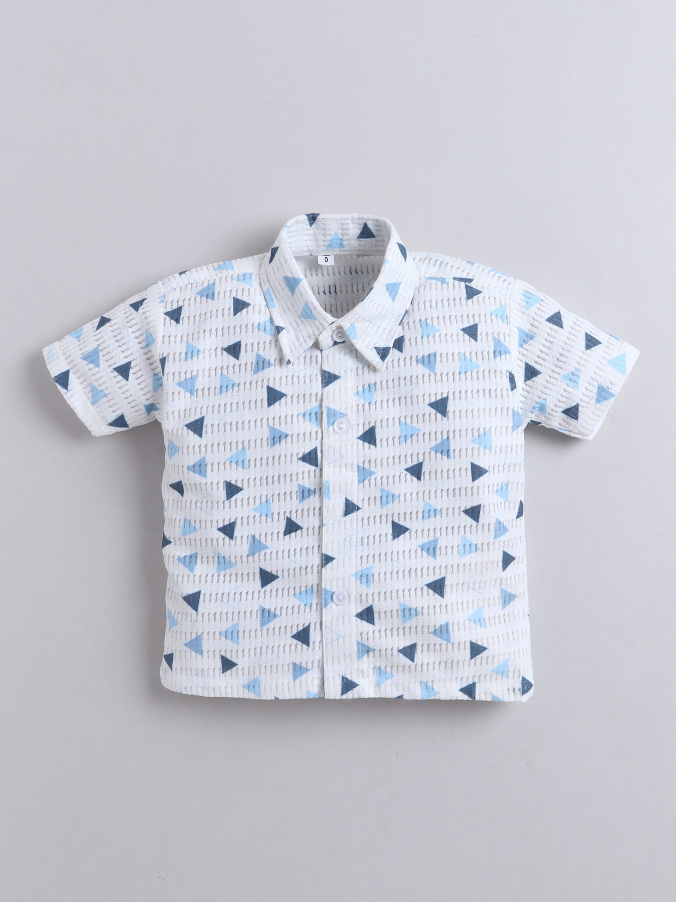 Add a playful yet stylish touch to your child’s wardrobe with this Shirt & Shorts Set With Cap, Suspender & Bow. Made from a soft cotton blend fabric, the outfit offers a comfortable feel while keeping a smart and trendy appearance. The shirt features a vibrant geometric triangle print that creates a modern and eye-catching design. Paired with matching shorts, the set is enhanced with a coordinated cap, suspenders, and a bow tie for a charming and polished look. Ideal for parties, outings, and festive occasions, this outfit ensures your little one stands out with effortless style.