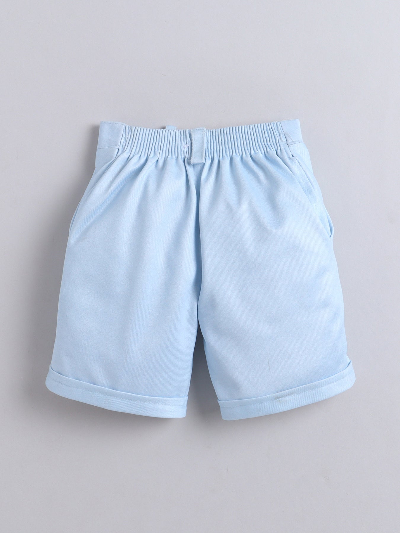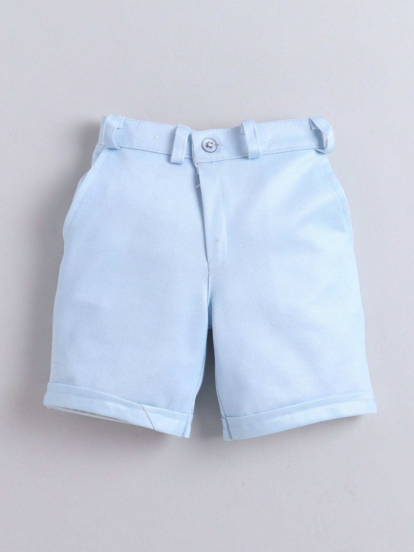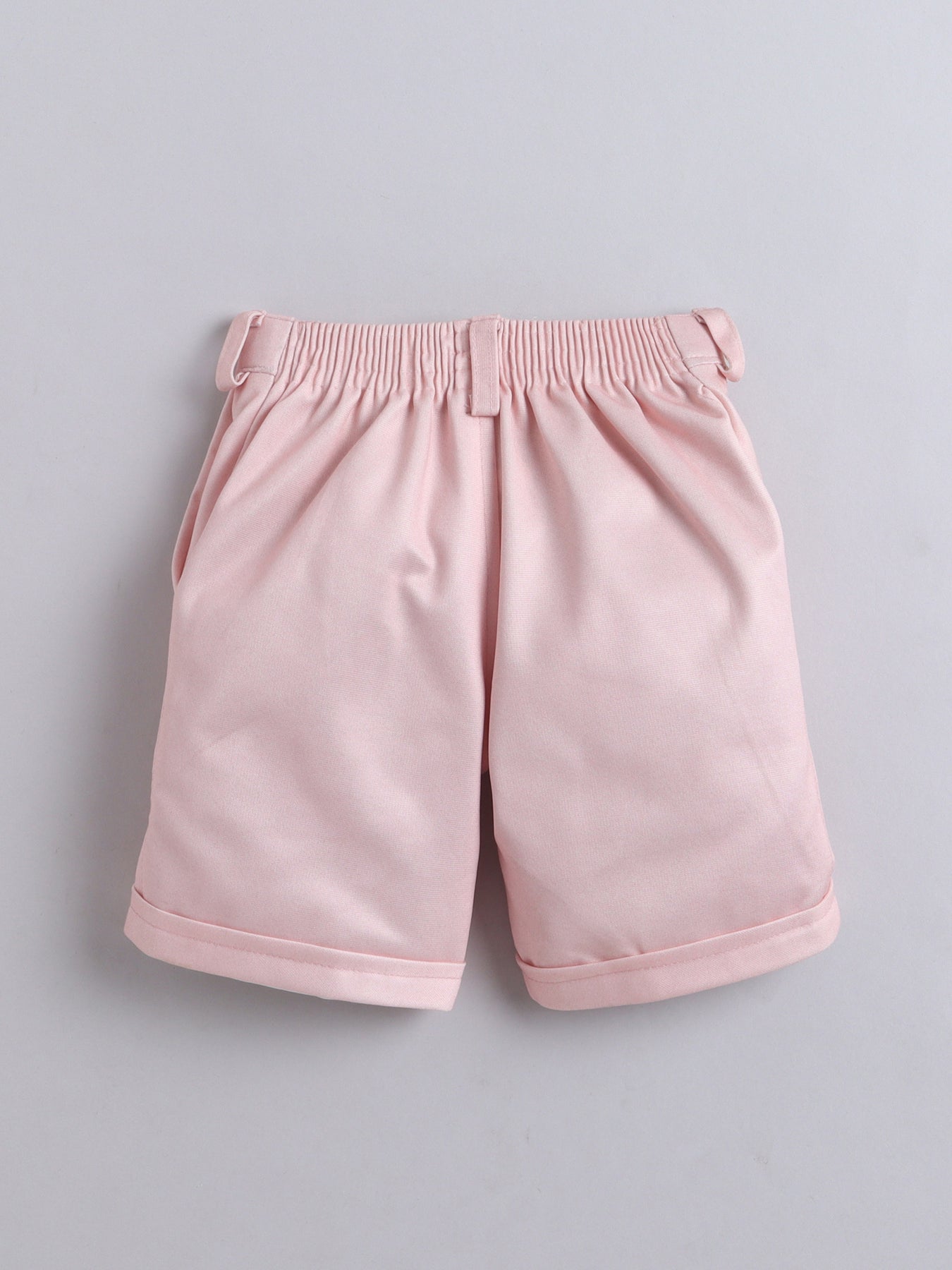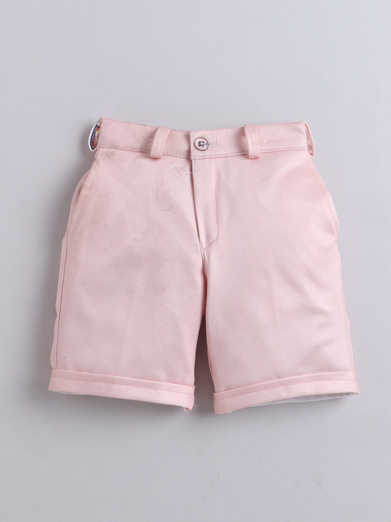 Add a playful yet stylish touch to your child’s wardrobe with this Shirt & Shorts Set With Cap, Suspender & Bow. Made from a soft cotton blend fabric, the outfit offers a comfortable feel while keeping a smart and trendy appearance. The shirt features a vibrant geometric triangle print that creates a modern and eye-catching design. Paired with matching shorts, the set is enhanced with a coordinated cap, suspenders, and a bow tie for a charming and polished look. Ideal for parties, outings, and festive occasions, this outfit ensures your little one stands out with effortless style.