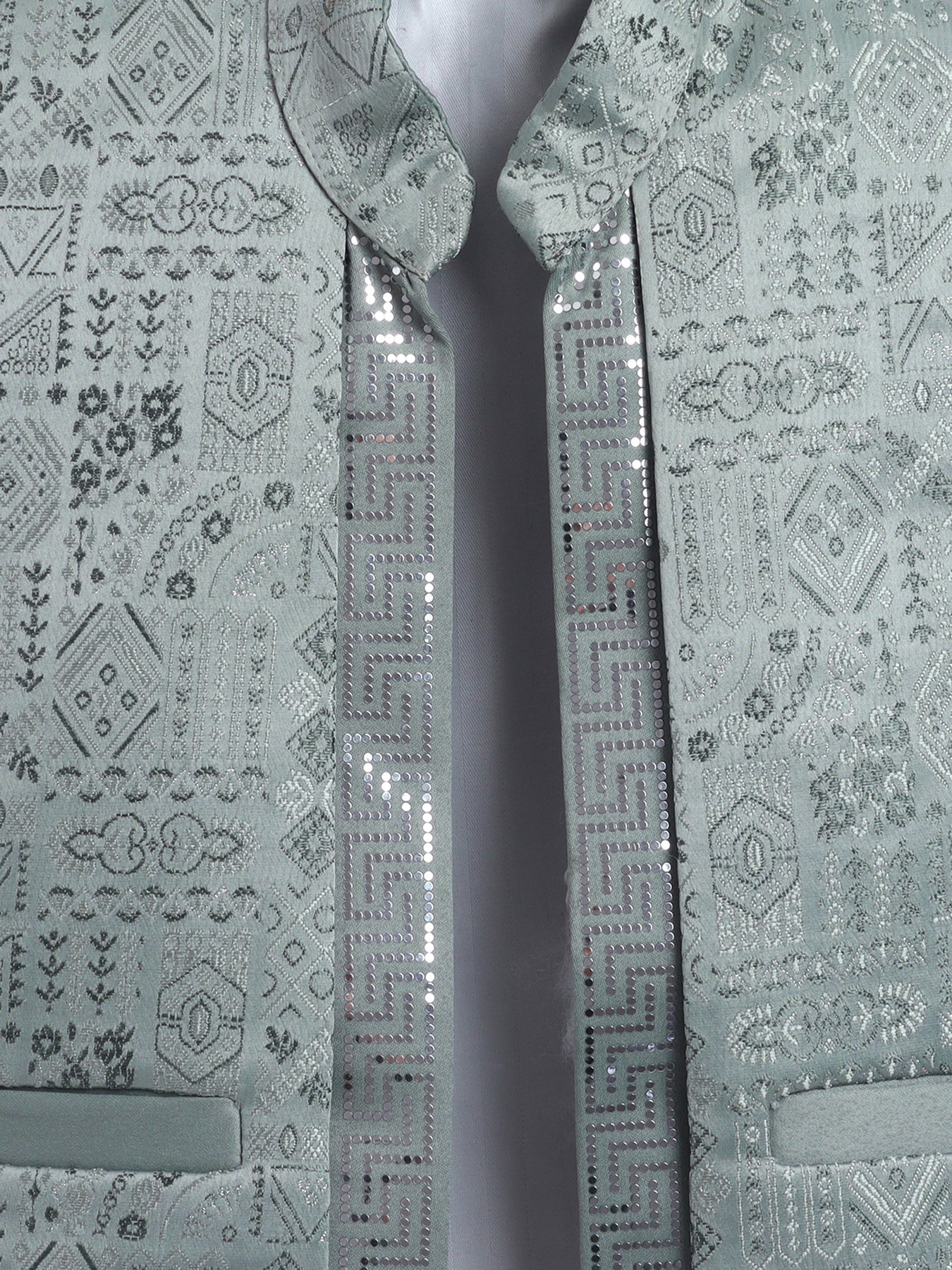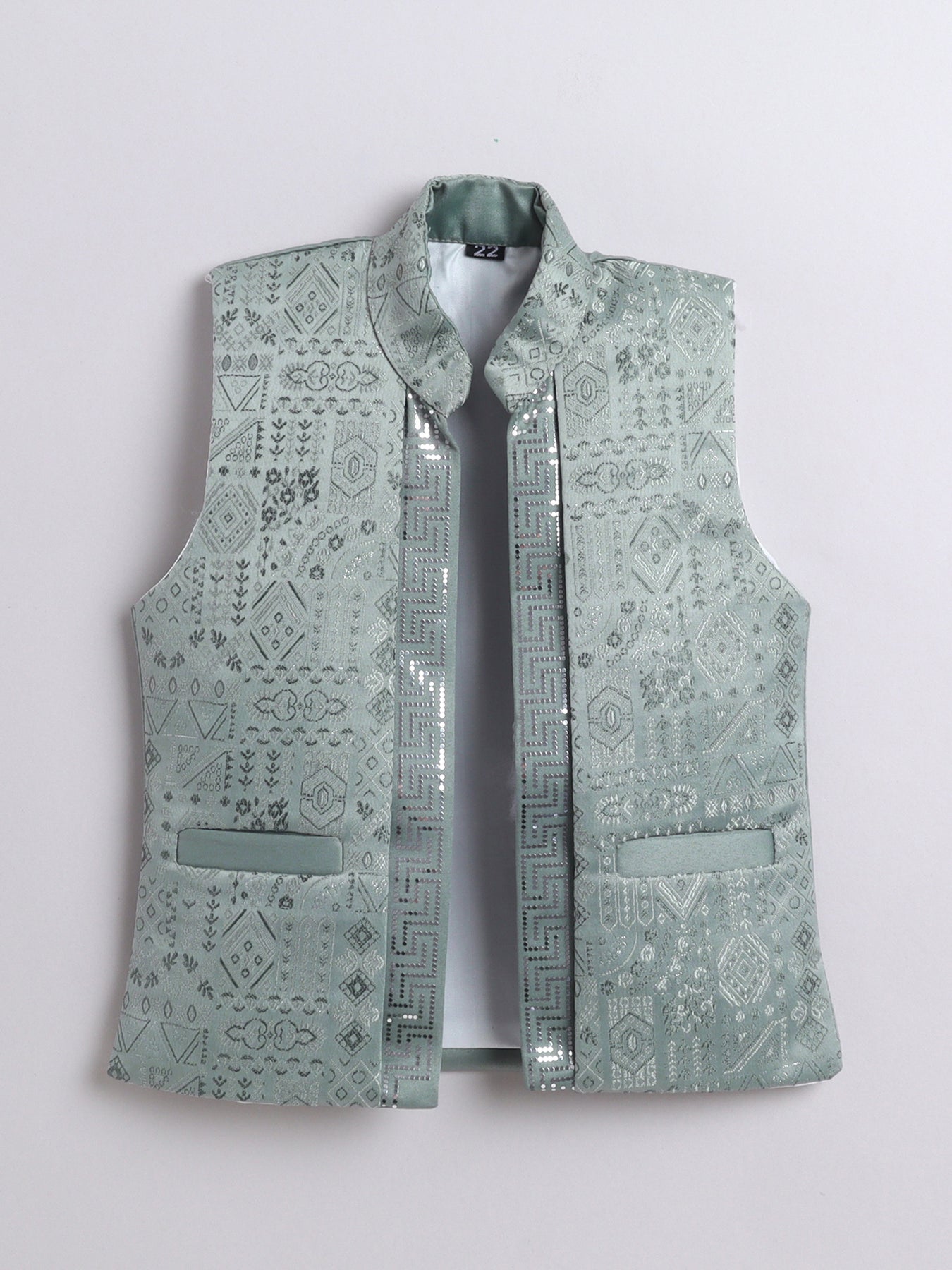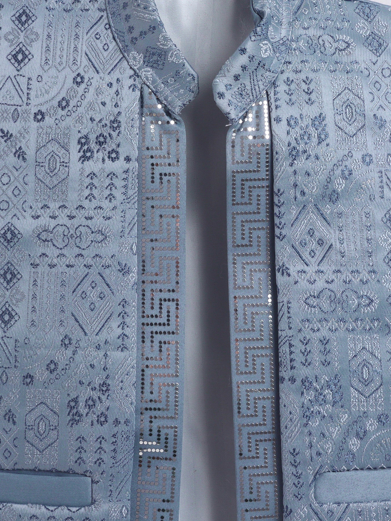 Boys Indo Western Jacquard Sequined 3 Piece Ethnic Suit Set