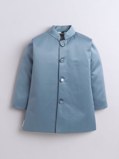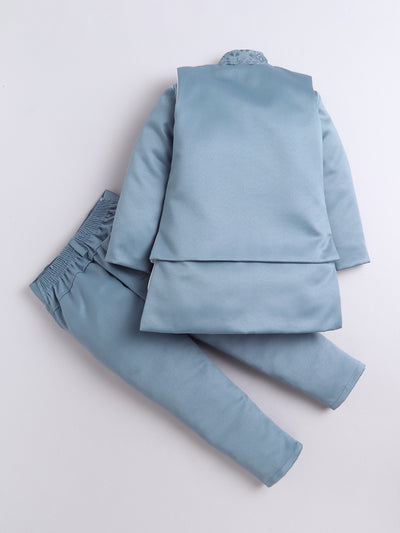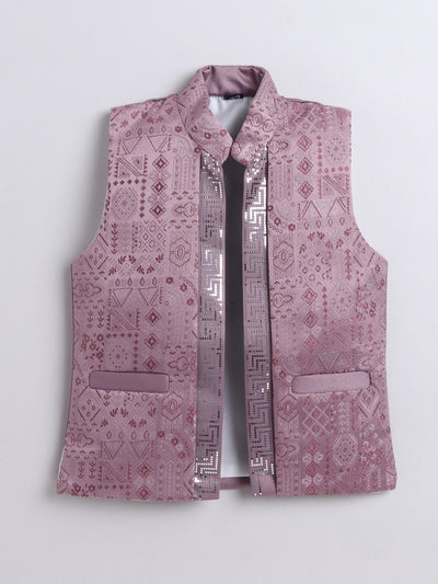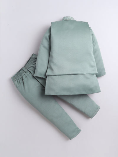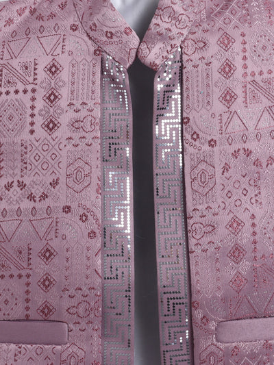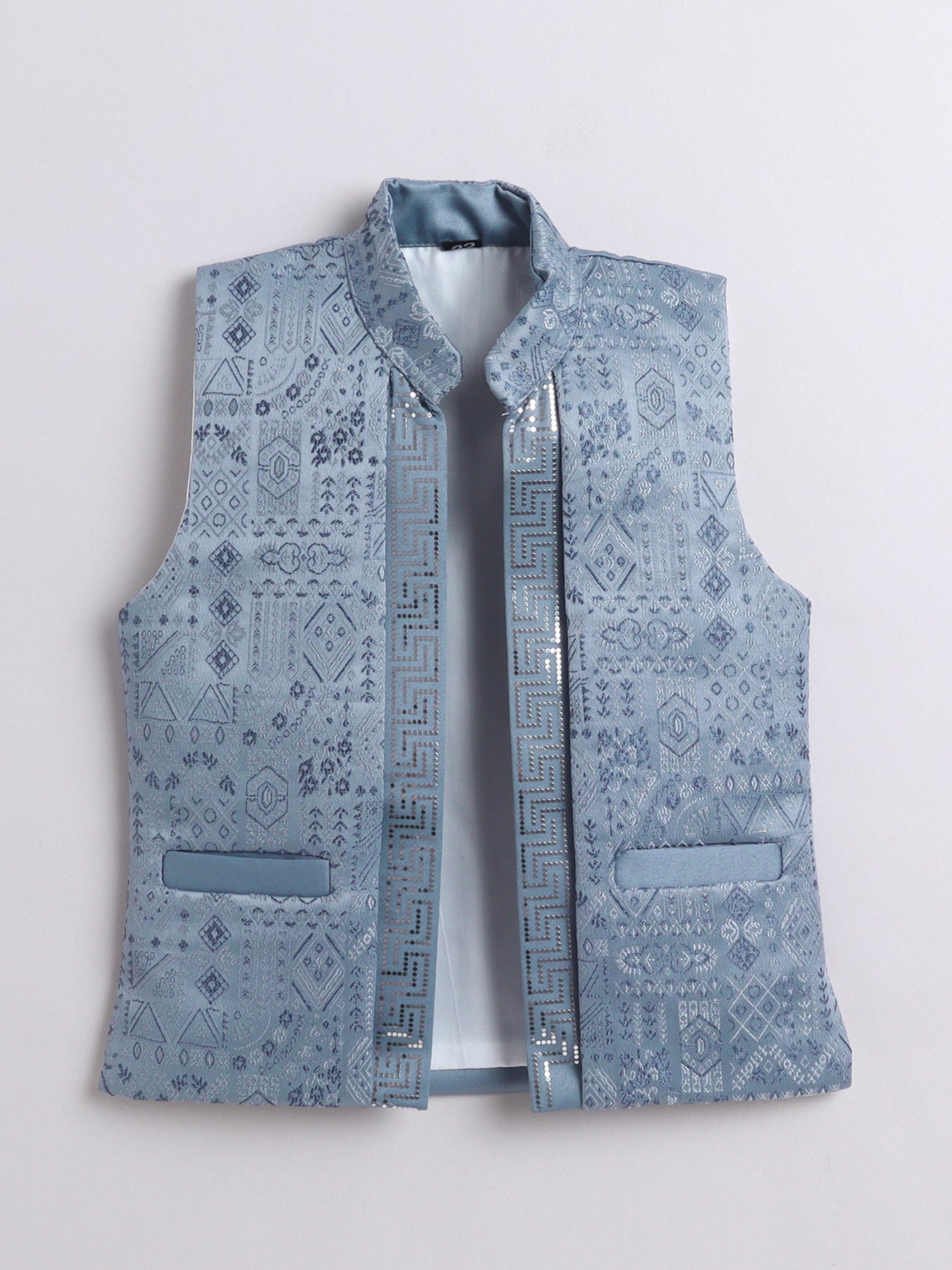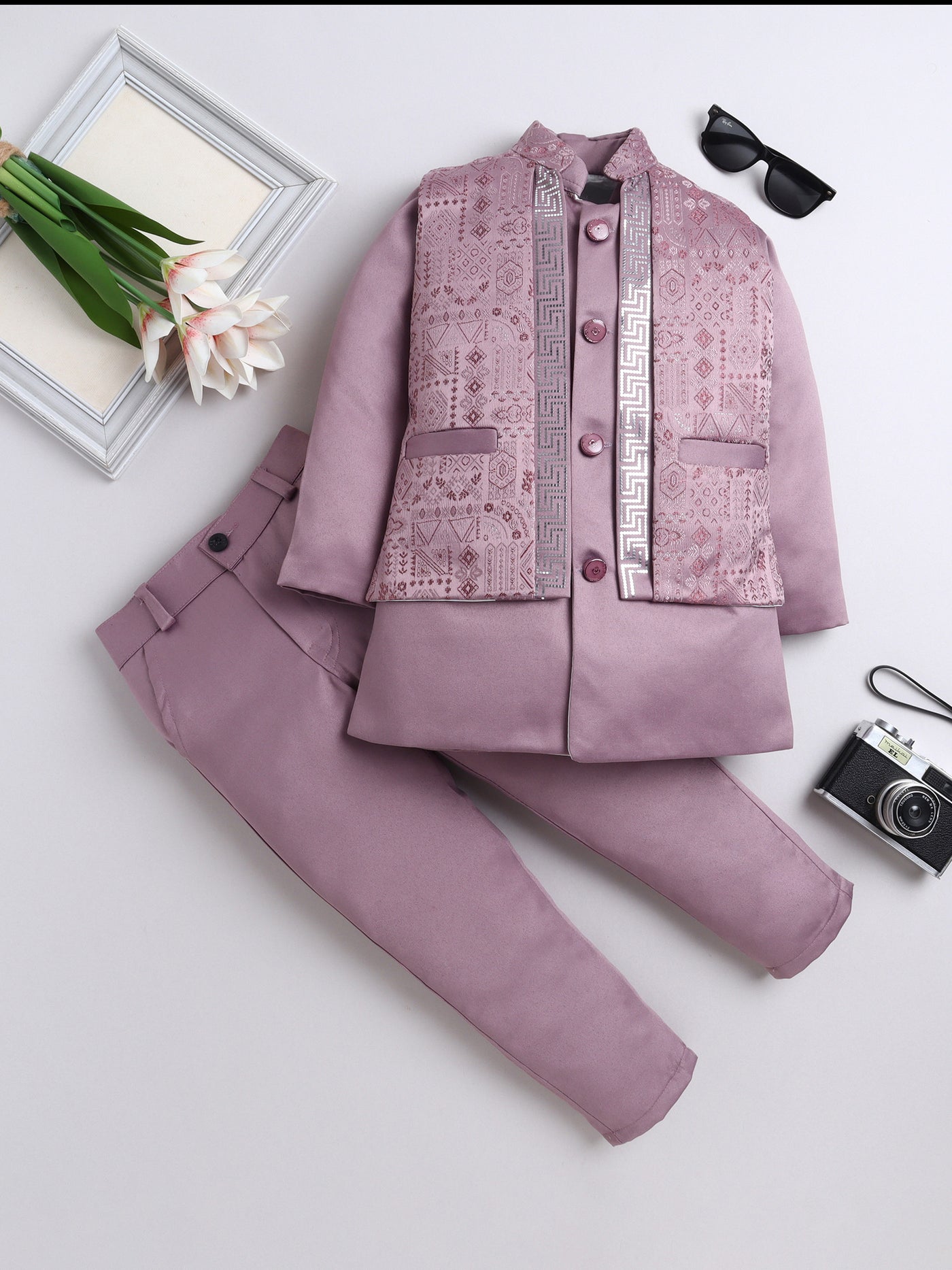 Boys Indo Western Jacquard Sequined 3 Piece Ethnic Suit Set