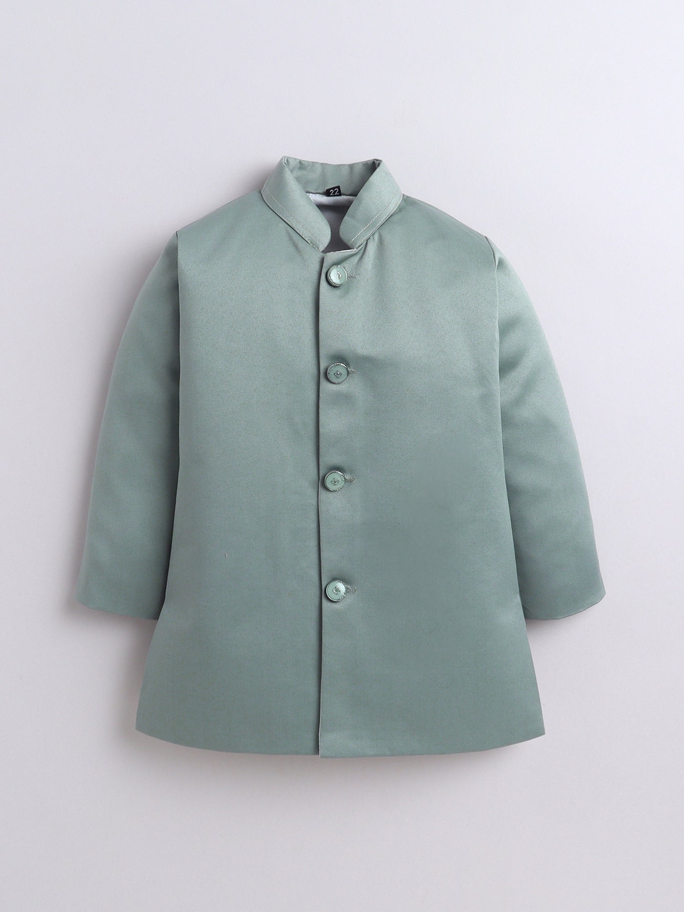 Tastefully placed sequin work on the jacket adds a shimmering effect that catches the light beautifully, making your little one stand out at celebrations.