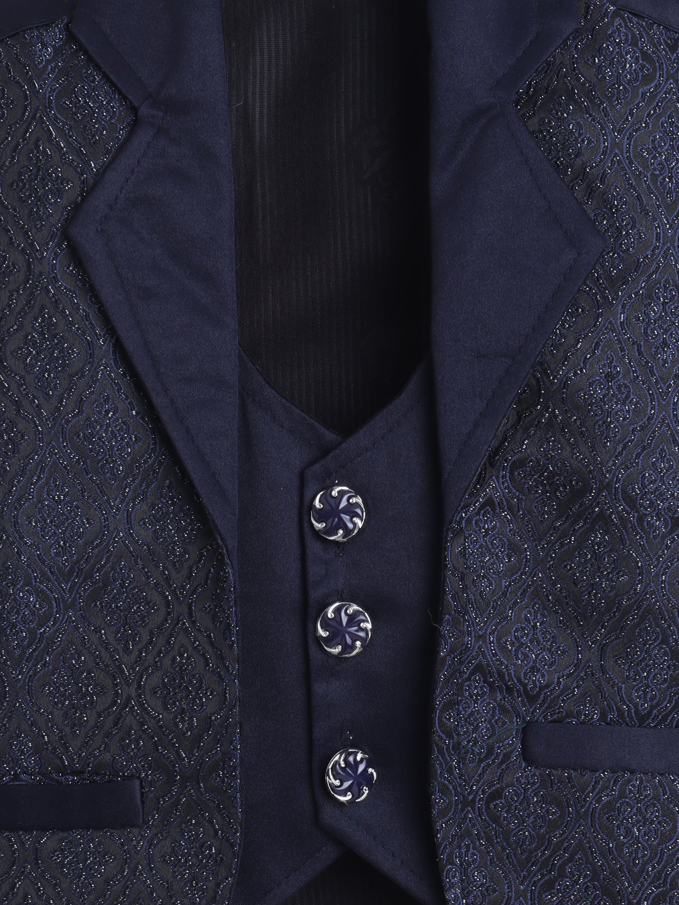 Jacquard Woven Waistcoat: Intricately designed with a rich texture and fine detailing, offering a royal and festive appeal.