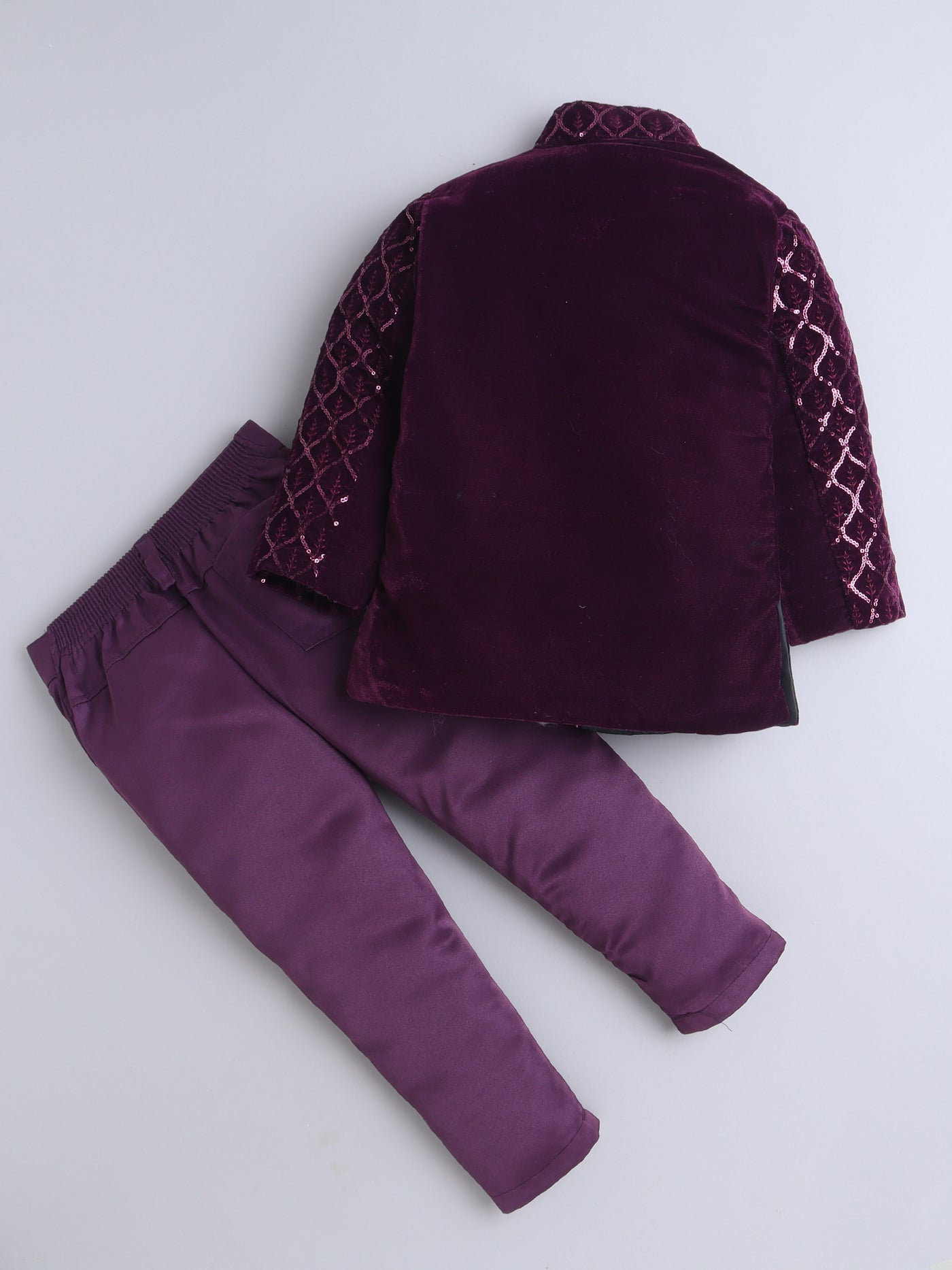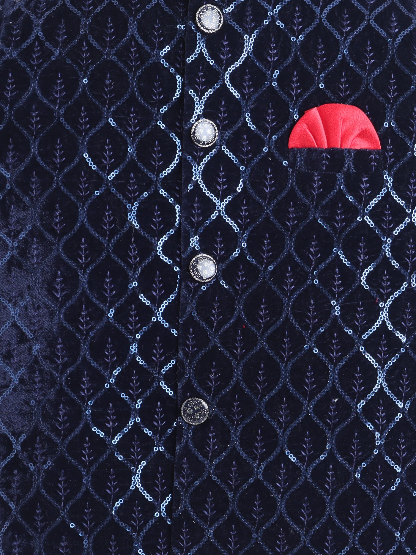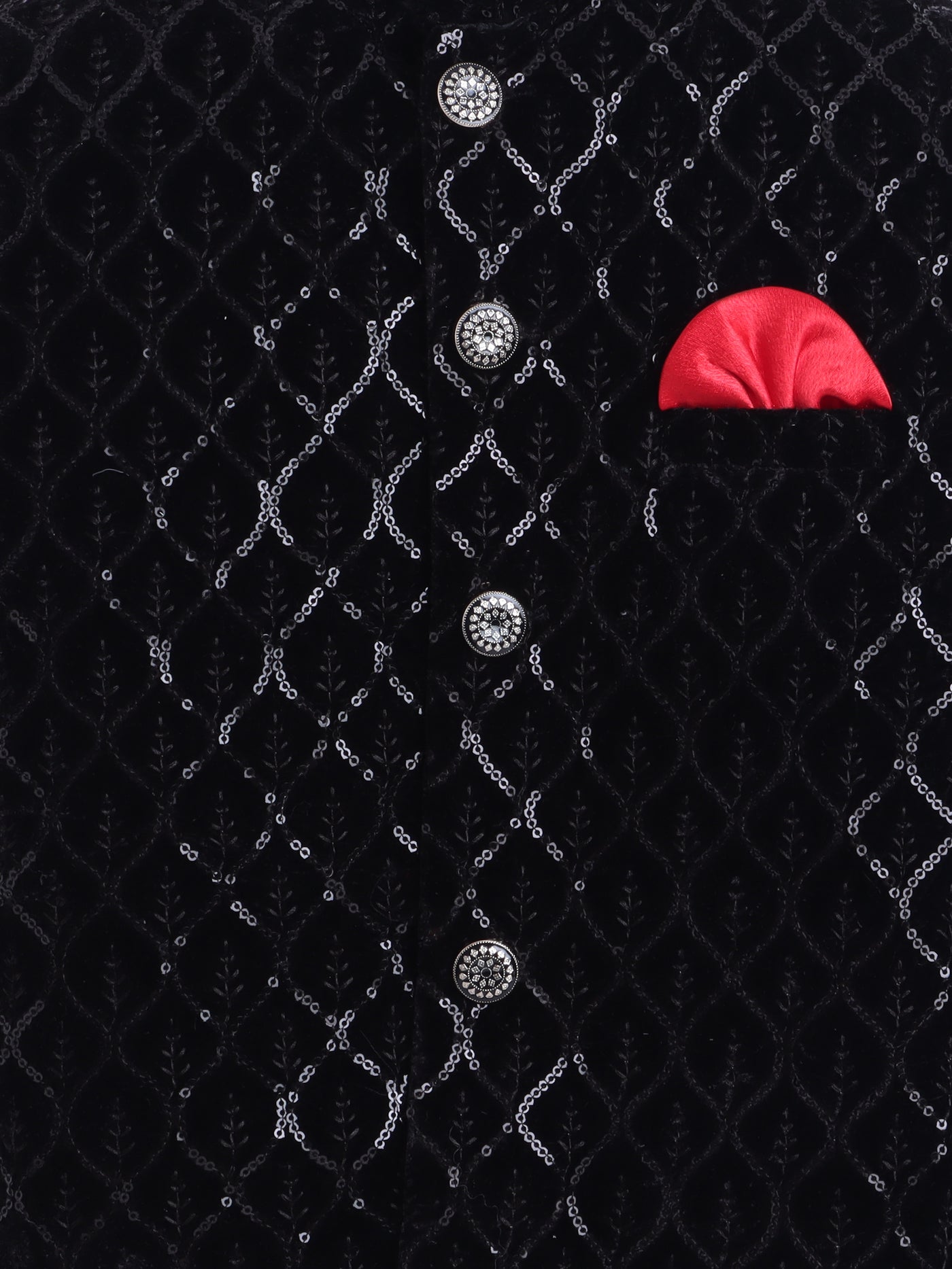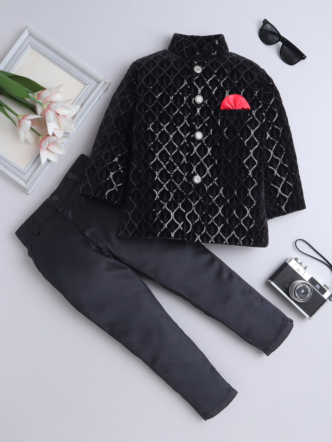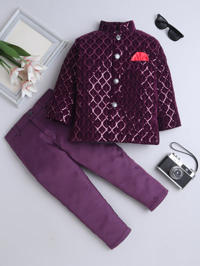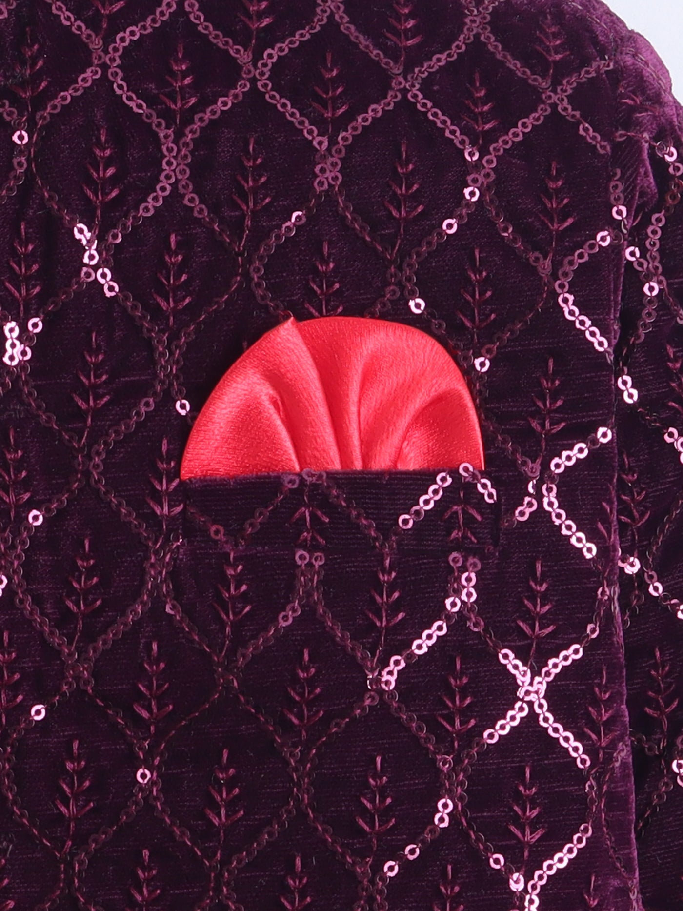 Boys Velvet Leaf Motifs Sequined Jodhpuri 2 Piece Suit Set