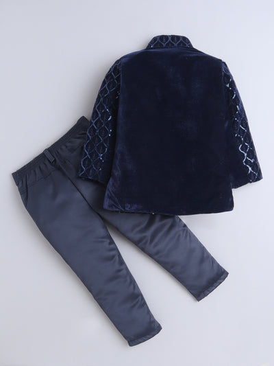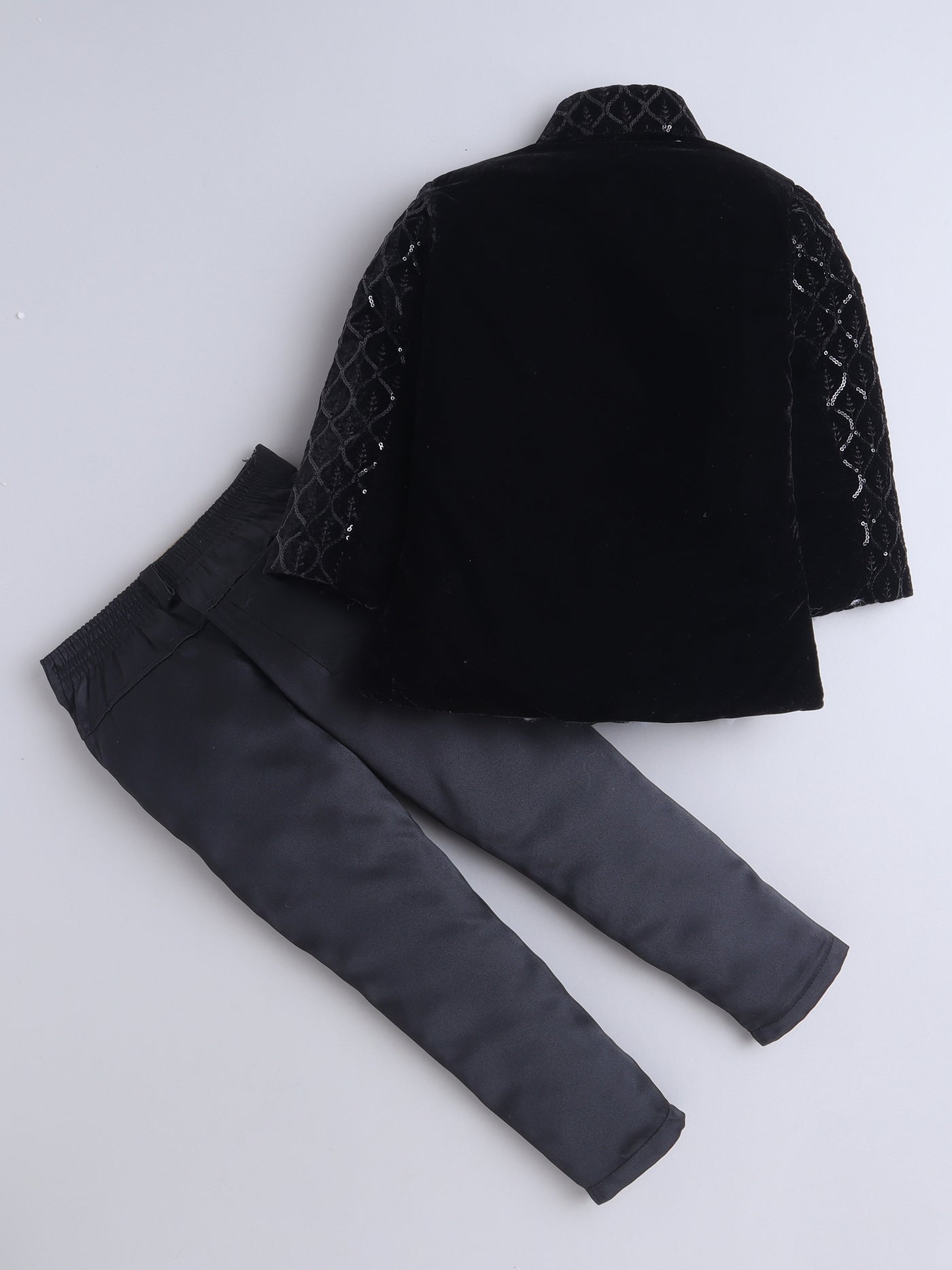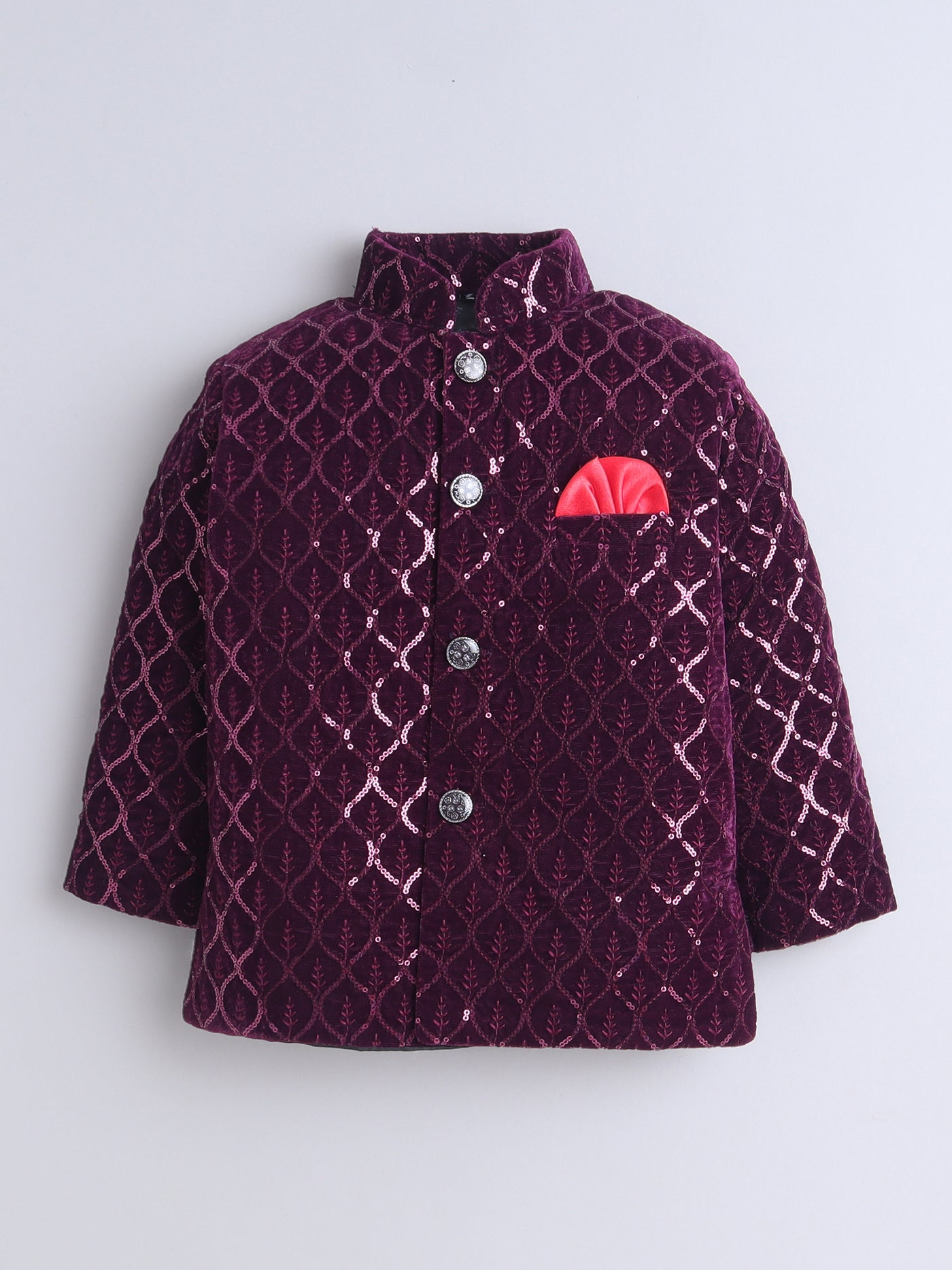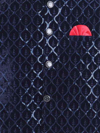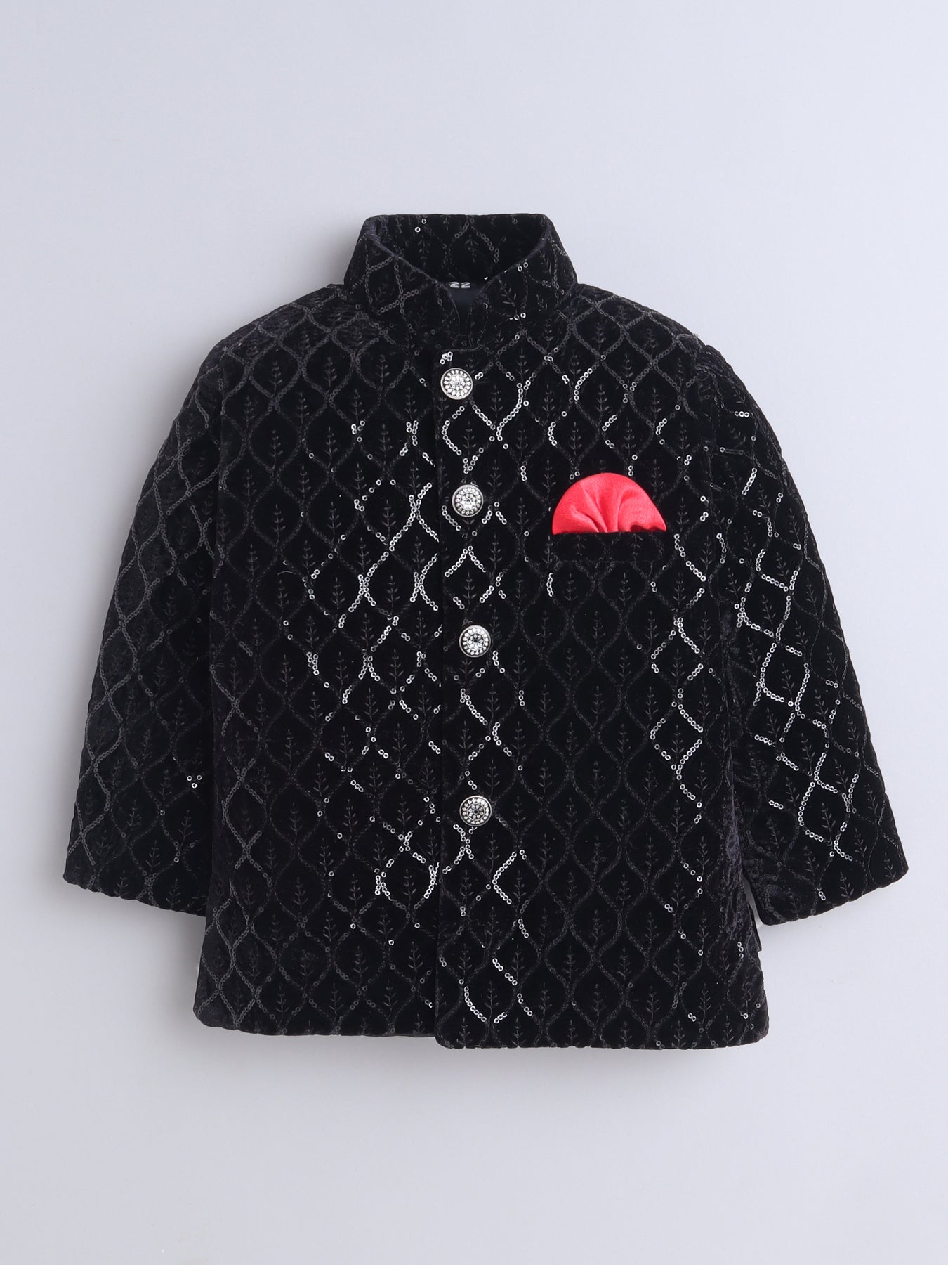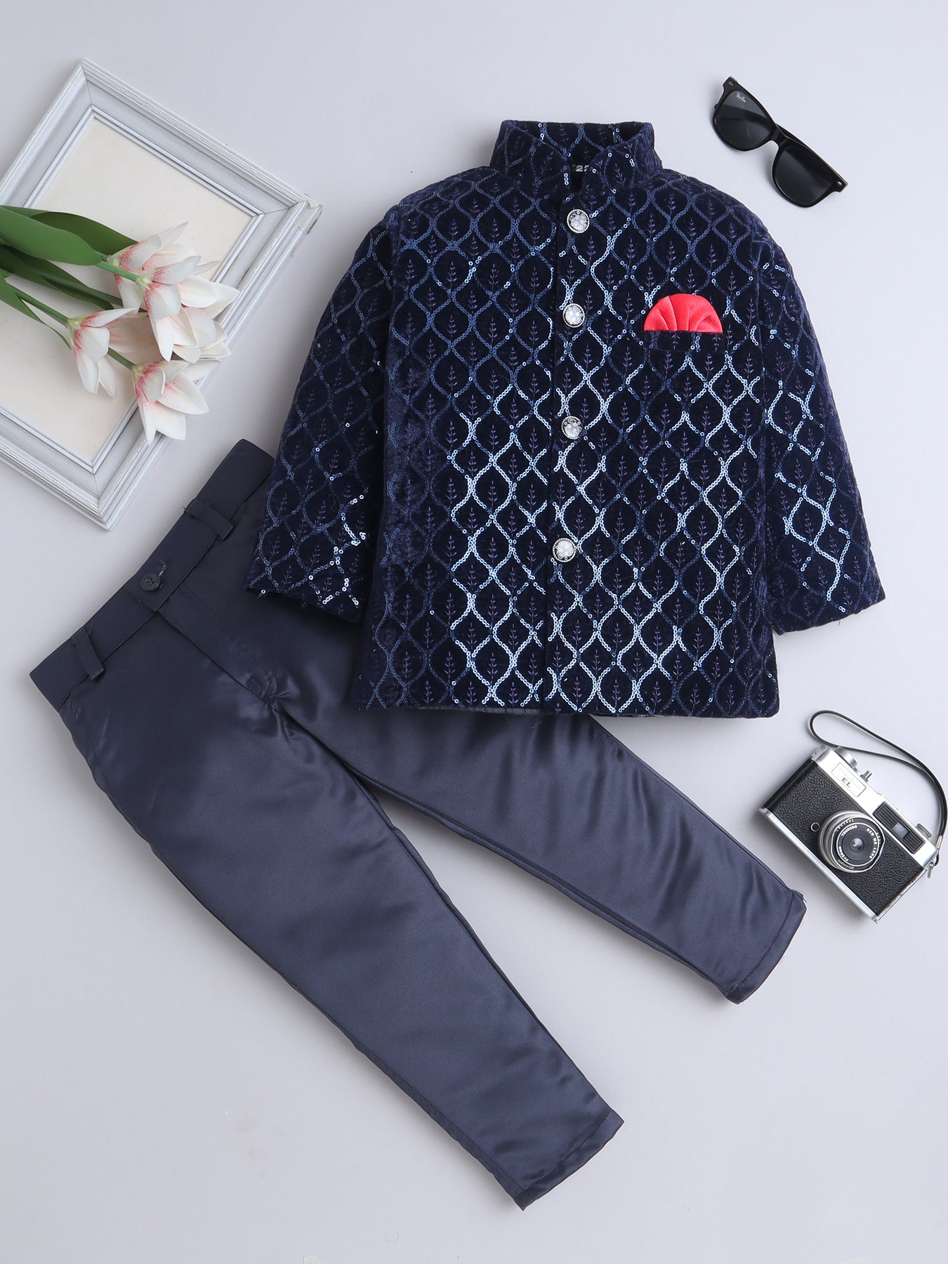 Boys Velvet Leaf Motifs Sequined Jodhpuri 2 Piece Suit Set